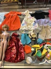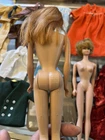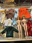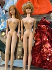 The product is a 1958 Barbie doll with a Skipper head included and another Barbie without a specified date. This Barbie set is a vintage collectible from the year 1958, featuring the iconic Barbie character. The set includes at least one doll, representing a classic piece of toy history that would appeal to collectors and fans of Barbie dolls.sold as is some clothes say Barbie others no name.