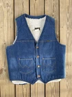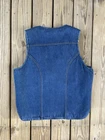 This 1970s Wrangler Vest for men exudes a classic Western and cowboy style with its denim fabric in a solid blue color, featuring button accents and closure. The biker-style vest is made of cotton and carries the authenticity of being crafted in the United States. The Wrangler brand adds to its rugged charm, making it a timeless piece perfect for those who appreciate vintage American fashion.