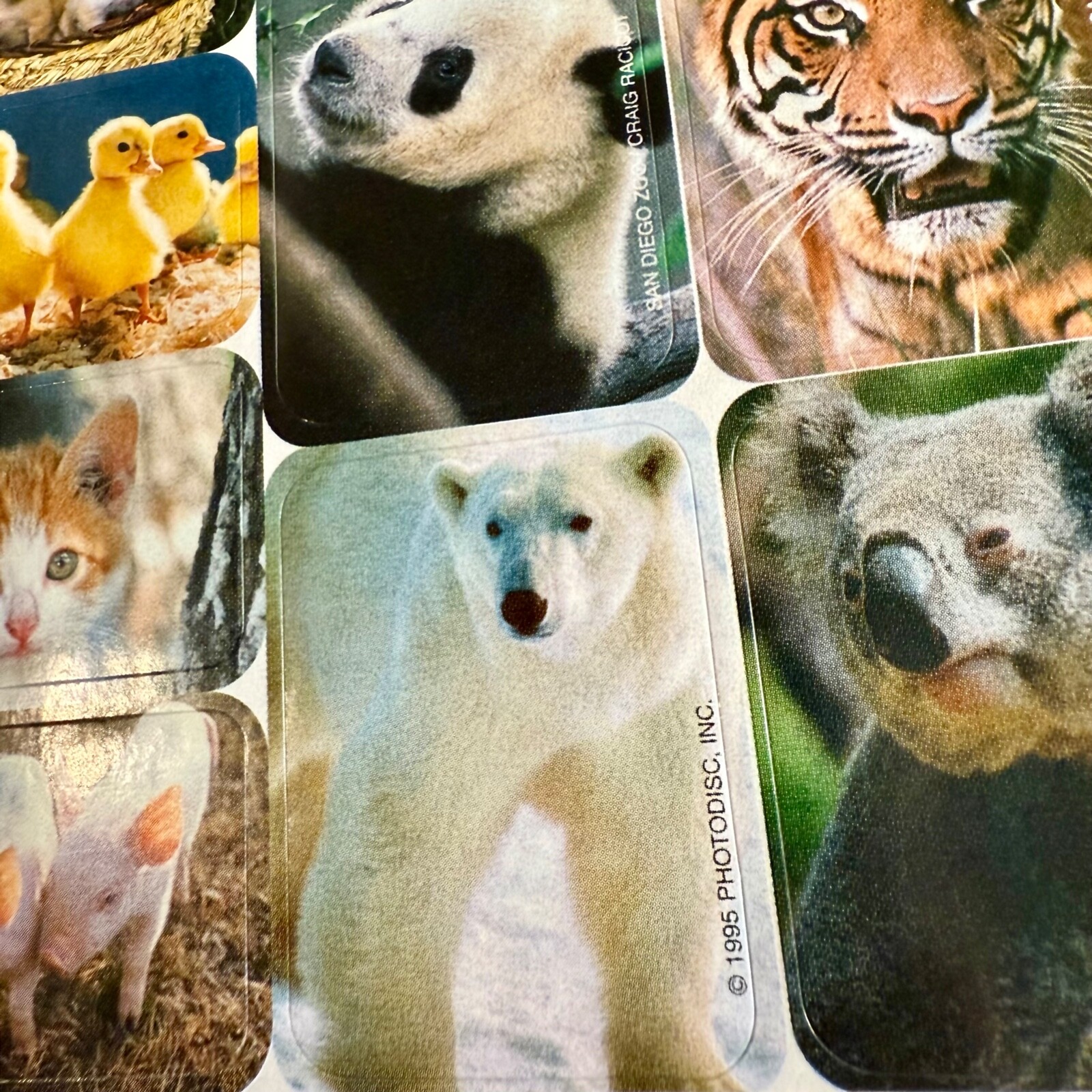 1995 Vintage Sticker Real Kitten Pig Duckling Pup Panda Zebra Polar Bear Lion +