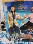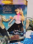 The 1996 Mattel Barbie Loves Elvis Live On Stage Collector Edition Doll features a Barbie doll and an Elvis doll in a set that includes a guitar, accessories, and musical instruments. This vintage Barbie doll is made of vinyl and plastic, with a Caucasian complexion and a height of 12 inches. It is part of the Barbie Loves Elvis product line, showcasing a Barbie and Elvis theme in original packaging from China. Guitar loose in box, some box wear, see photos