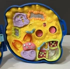 1996 - Minnie Mouse Playcase - Bluebird Toys, compact only. The compact is in great, vintage, and played in condition with normal signs of wear from use and time. There is some paint wear on the outside of the compact that is visible. All parts are working: • the pink spaceship door opens • the dial spins to move dolls when placed on the globe’s clear peg • the pink switch makes the figures jump when placed inside the pink holes • the blue gate opens and closes Your item will be packaged with care. Please review all photos for condition and ask any questions as this is sold as is. Thank you! :)