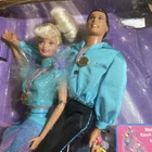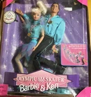 The 1997 Barbie & Ken Olympic Skater USA Team Doll Set by Mattel features a 12-inch Barbie and Ken dolls representing the US Olympic Team. The dolls have blonde hair, blue eyes, and light complexions, dressed in Olympic skater outfits. The set includes two dolls in their original packaging, showcasing the Barbie and Ken characters in a skating theme from the USA Olympics series. This vintage set, despite having a damaged box, is a collectible item for Barbie enthusiasts and Olympic memorabilia collectors.