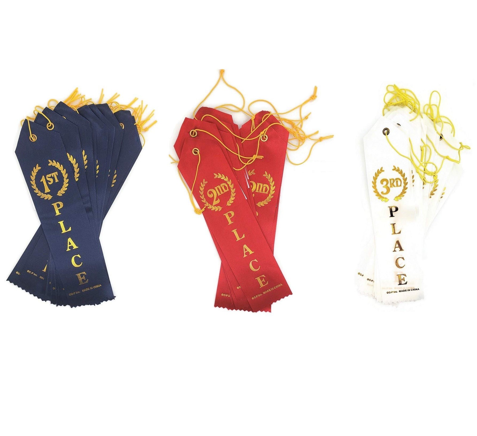 Reward your winners with these 1st, 2nd and 3rd place winner ribbon. This winner ribbon is great for spelling bee's, school field days, cooking contest, talent show, and much more. Must have for your event's party supplies. 8" x 2". Includes event card & string 36 Pack. 12 pieces for each place! 1st Place is Dark Navy Blue. 2nd Place is Red. 3rd Place is White. Reward your winners with these 1st, 2nd and 3rd place winner ribbon. This winner ribbon is great for spelling bee's, school field days, cooking contest, talent show, and much more. Must have for your event's party supplies. Great for School Events, Music and Theater Performance, Fundraisers, Carnivals, Sport Events, Dance Competition, Beauty Contest, etc. 8" x 2". Includes event card & string 36 Pack. 12 pieces for each place! 1st Place is Dark Navy Blue. 2nd Place is Red. 3rd Place is White.