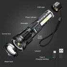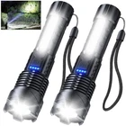 ☀ Super Bright Flashlight ✔ uses a super bright high power wick to drive away the darkness, with a maximum lumen value of 9900000 and a super long range of 1000 meters. Perfect for work, outdoor, camping, adventure and emergency. ☀ Rechargeable LED Flashlights ✔ with built-in rechargeable battery, equipped with USB-C charging port, charging time is only about 4 hours, in the brightest mode, usage time up to about 8 hours. And has a smart power indicator light 25%-50%-75%-100%, always know the power situation. ☀ 7 lighting modes ✔ The main light 3 modes, click the switch to enter (super bright - medium bright - flashing), side lights 4 modes, long press the switch to enter (super bright - medium bright - red - red and blue flashing), the flashlight can be turned off directly after 10 seconds of operation in each mode without having to cycle through all the modes. ☀ Tactical flashlight, adjustable focus. Many people say that the flashlight is too heavy, we solved this problem by using a high-quality ABS flashlight body and aluminum head. Combines quality with weight reduction. The flashlight weighs less than 150 grams and is much easier to use. ☀ Package includes: 2 x Flashlight, 2 x Build in Battery, 2 x Charging Cable, 2 x Rope. We have carefully checked all items before shipping to ensure that the product works properly. If you have any questions, please feel free to contact us to get the best solution within 12 hours. Note: 1. Due to the high working power of the super bright flashlight, the LED light position will generate more heat, please do not touch the light-emitting position (ie the head of the flashlight) with hands; 2. Do not use the flashlight in water, do not immerse; 3. Do not irradiate the human eye; 4. Do not give it to children to use.