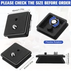 Features: PVC material and lightweight: These ball head quick release plates feature enduring PVC structure for easy portability, as the aluminum material is lightweight than many other metallic materials. Good compatibility: It is recommended to have additional quick release plates for different cameras to facilitate tripod replacement. Specifications: Material: PVC, aluminum Color: black Size: as shown in the pictures Package Includes: 2 x Tripod quick release plates Warm notes: Manual measurement, please allow slight errors in size. The colors may exist slight difference due to different screens. Please measure the size of your tripod and read the product information carefully before ordering. The mention of brand names and any related models above is only for purposes of demonstrating compatibility. Package content: 1 piece 41mm and 1 piece 43mm black tripod quick release plates which are compatible with Ambico V0550 V0551 V0552 V0553 V0554 (fluid type head only), Sunpak 7500 Pro 7500tm 7575, Kalimar Pro-Tech V40, and so on Good workmanship: the camera mount adapter plates are made of PVC material and the middle anti-twist locking screw is made of aluminum material; The surface is finely oxidized to give it a long service life, so you can use these camera mount adapter with confidence Standard anti-twist locking screws: these ball head quick release plates are equipped with standard anti-twist locking screws which conform to international standards, compatible with the standard for camera tripod ball heads Easy to install and remove: the quick release plates can be fixed to the camera base, which can save your time and facilitate the installation and disassembling of the tripod, easy for you to use How to install: depending on the card position position of the Pan/ Tilt, you can insert the tripod quick release plates directly for installation; The quick release plates have a slotted screw that you can tighten with your fingers or coins
