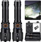 Product Description LED Flashlights High Lumens Rechargeable, 2 Pack 990,000 Lumen Super Bright Flashlights with 5 Modes, IPX7 Waterproof Powerful Handheld Flash Light for Camping Outdoor Home Emergency 990000 High Lumens & Brightest: These rechargeable flashlights high Lumens up to 30 times brighter than ordinary led flashlights.The super bright flashlights can clearly illuminate things within 3280 feet (1000m) on a dark night, easily lighting up an entire room or backyard. A must-have for outdoor camping or other lighting needs USB Input % USB Output: LED flashlights high lumens increase 50% charging speed than ordinary usb rechargeable flashlight, greatly saving time. And the powerful flashlights also has a power output function, so you can use it as a power bank to charge your devices via the USB cable. In addition, flashlights high lumens have a power display function, so that you can see the power at a glance Large Capacity & Long-Lasting: Our high powered flashlight just needs to be charged in 2-3 hours to provide a minimum lighting up to 12 hours. Suitable for outdoor night walking, running, cycling, camping, mountaineering, and other outdoor sports, allowing you to fully experience the charm of nature 5 Modes & Adjustable Beam: Flash light high lumens for home camping have 5 light modes: high, medium, low, strobe, and SOS. Super bright rechargeable flashlight can adjustable light beam by pulling/pushing the lamp head IPX7 Waterproof: IPX7 waterproof is perfect for raining, snowing or other emergency situations. Small flashlight is made of aluminum alloy material, which is drop and wear-resistant About Us We are a reputable seller with many years of experience selling on eBay. Our goal is to provide high-quality products and excellent customer service. Shipping Items will be shipped within 1-3 business days when we received payment. (Orders are not processed on weekends & holidays) Tracking information will be sent once item is shipped. Delivery time depends on destination and other factors Item is shipped to ebay address. Leaving correct address can minimize delay. For international shipping and shipping to Guam, Hawaii and Alaska, Please contact us before placing the order. International buyers please note: Import duties, taxes and charges are not included in the item price or shipping charges. These charges are buyer’s responsibility. We will try our best to reduce the risk of the custom duties. Local pick-up is unavailable at the moment. Contact Us We reply any email messages within 1 business / working days(off-duty at weekend). If you do not get a response from us, then please check your junk or spam mailbox. Our Business hours: Mon-Fri 9:00-18:00, UTC/GMT +8 hours. Please contact us either by clicking "contact seller" in the "purchase history" section or simply click "ask a question" at the bottom of this page. If you are unsatisfied with our item or service, please contact us before leaving any feedback. We are committed to resolve all issues in a friendly and satisfactory manner.