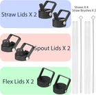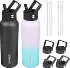 FULLY EQUIPPED: BJPKPK 2 pack metal water bottles equipped 2 insulated water bottles, 6 lids, 4 straws and 2 straw brush to meet your every need. Flex removable lids for drinking smoothie or fruit drinks. Spout lids for hot water. Straw lids for iced beverages. All of the 6 lids are convenient to carry, BPA FREE and leak proof 2 PACK INSULATED WATER BOTTLE: BJPKPK insulated water bottles with straw lids use double-walled vacuum insulation technology to keep your beverage cold for up to 24 hours, or hot for up to 12 hours, make sure you enjoy your favorite beverages at the most suitable temperature all day PREMIUM MATERIALS: BJPKPK metal water bottles made with high-quality 18/8 food-grade stainless steel, ensuring its durability and rust-resistant quality. With a powder coating finish for a secure grip, a wide-mouth opening for easy ice filling and cleaning, this sports water bottle is perfect for office, gym, traveling, hiking and more SWEAT-FREE & REUSABLE: Say goodbye to those annoying sweat rings on your desk or in your car, our thermos water bottle is designed to be sweat-free! Get more out of your outdoor adventures with our reusable water bottle that can be refilled multiple times, reducing single-use plastic waste and promoting a sustainable lifestyle IDEAL PRESENT CHOICE: BJPKPK 2 pack water bottles comes with multiple colors combinations, and various sizes (18 oz, 22 oz, 27 oz, 32 oz, 40 oz) to choose from according to your need. Whether you're at the office or out and about, this thermos bottle is the perfect accessory to complement any outfit. It is also a great present for your loved ones to help them keep hydrated and healthier BJPKPK 2 Pack Insulated Water Bottles with Straw Lids, 40oz Stainless Steel Metal Water Bottle with 6 Lids, Leak Proof BPA Free Thermos, Cups, Flasks for Travel, Sports (Oasis+Black)