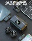 Plug and Play: No Bluetooth or APP needed. The wireless lavalier microphone can be clipped to the collar for hands-free audio and video recording. Just need to plug the receiver into your device, and power on the microphone, it will start working for you soon Design for Professional: The J6 microphone boasts a 48kHz/24bit audio format for accurate sound capture. With a 60dB signal-to-noise ratio, it delivers excellent audio with minimal background noise. Plus, it can handle up to 95dB Sound Pressure Level, perfect for recording high-pitched sounds. Visual dials have been designed to provide clear insight into the microphone's usage status, including connection, noise reduction function, mute, battery usage, and more 165FT Wireless Transmission & Rechargeable: This lavalier microphone boasts a consistent audio signal, capable of reaching a remarkable wireless transmission distance of up to 165 feet. Equipped with a high-quality DSP chip, it ensures even more stable transmission. The wireless microphone transmitter features a built-in rechargeable battery, offering up to 6 hours of operation on a single charge, or an impressive 42 hours with the charging case Omnidirectional Mic with Noise Reduction: Supports one-click on the yellow button to turn on/off the noise cancellation on TX and RX. The built-in intelligent active noise Cancellation chip and advanced 2.4GHz transmission technology, which allows you to record clearly in noisy environments, which can provides more vivid, soft, natural and stereo sound around for recording or real time video Compatible with Most Devices: Compatible with iPhone, iPad, PC, Android, Camera etc. Work with IOS 6.0 system or above (with Lightning), Android 3.0 system or above, can be use with iPhone, Android etc. The handheld mic is suitable for interviewing, online conferencing, podcasting, vlogging, live streaming What You Get: 2*TX (2 Transmitters) + 1*RX(1 Receiver ) +2*Adapter+2*Windscreen+ Charging Case + 2*Charging cable + Instruction. Our worry-free 18-month warranty, and friendly customer service