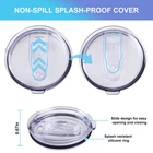 EASY TO OPEN AND CLOSE:Switch sliding cover design, easy to use.The hole on the top of the cup can be used directly or with a straw.The sliding cover design prevents you from touching your nose while drinking water. EXCELLENT COMPATIBILITY:The lid can replace 20 ounces (the inner diameter of the cup is about 3.15 in) insulated stainless steel cups of any material!In order to avoid you to buy an inappropriate size lid, before buying Please measure the inner diameter and outer diameter of the cup, and then please refer to our pictures.These two pictures are taken by our actual measurement. SPLASH-PROOF:Our pack of 2 non-flip lids features a leak and spill proof design, the flat bottom lid is lined with a silicone gasket around the edge and features a sliding mechanism and tighter snap design, the leak and spill proof feature cannot be ignored, so you don't have to worry about spills and leaks, especially when filling hot beverages or when driving. It prevents splashes and large spills when flipping the cup over. HIGH-QUALITY MATERIALS:Our replacement cup lid features double seal technology to support the temperature of your drink, whether hot or cold, you can enjoy your favorite beverage.Made of high-quality raw materials, can be used for a long time, In addition, it is very easy and convenient to clean, hand wash, or dishwasher safe, economical . Aset of 2, you can use one for yourself, the others can be given to your loved ones, or your dear family and friends, or you can keep it as a spare.But I think it's good for friends who drive, because it has a splash-proof function that keeps the liquid inside the water cup in the car from splashing out.So if you usually have a lot of driving, give it to yourself, or to your friends who drive around. This replacement lid of ours is a great companion for mugs for those who drive. When your insulated mug is filled with your favourite drink, cover it with our lid and place it in your car where you keep your mug, it will cover the mug very securely and will not let the liquid spill.If you have any questions or dissatisfaction with our products, you can contact us, we will do our best to serve you.