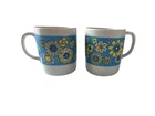 Add a burst of cheerful retro style to your morning routine with this pair of vintage 1970s floral coffee mugs. Featuring a bright band of mod daisies in blue, yellow, and white, these nostalgic mugs perfectly capture the flower power energy of the mid-century kitchen era. ☕ Item Details Set of 2 matching mugs 1970s mod floral daisy print on white ceramic Approx. 3.75" tall x 3" diameter Unmarked vintage (likely Japan or USA) Dishwasher safe glaze (hand wash recommended to preserve pattern) Excellent vintage condition — no cracks or chips, minimal wear from age 🌼 Perfect For Retro kitchen or mid-century display Coffee, tea, or hot cocoa mugs Vintage lovers, cottagecore collectors, or nostalgic gift-giving