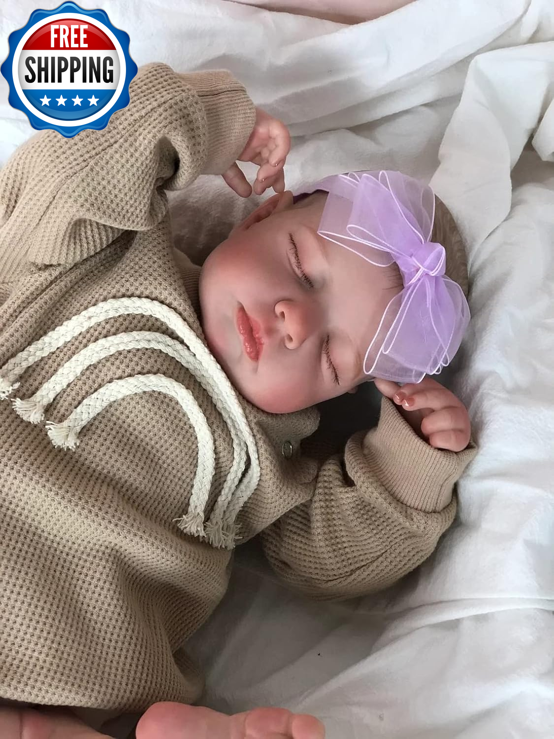 Reborn Baby Dolls 20 Inch Realistic Sleeping Doll Silicone Reborn Toddler Doll Weighted Handmade Doll Set NEWBORN LOOKING: approx.20 inch 50cm.Doll Net weight is around 2kg, 3lbs,the reborn toddler doll is handmade,there will be some difference in size and weight.Baby toddler can fit into newborn size real baby clothes,you can change beautiful clothes for him HANDMADE WITH LOVE:The reborn baby dolls is made by pure hand crafts(Soft Silicone Vinyl+Cloth body),hand drawing hair.Realistic lips are as full as newborns.You can feel the texture of her skin,hands and feet, every inch of her skin seems to be real SAFETY MATERIAL:The reborn baby doll arms and legs could be moved freely.The body is weighted cloth body with full vinyl limbs,when you put him in your arms and hold him,it feels like you are holding a real baby,kids can hand him to everywhere too APPLICATION:silicone cloth baby doll is your kid's good companion for sleeping so that your kids will not feel lonely.She is also great for Birthday present,Christmas,preschool,nurturing play,toy collector and child's growth companion partner PACKAGE:Baby Doll with outfit x1 (as picture),Magnetic Pacifier x1,Nurturing Bottle x1, Diaper x1,Birth Certificate x1 Product Description Real life Sleeping LOULOU baby details and Characters She Is Designed Like a Real Baby Baby's Identification: Height: 20inch/50cm (from head to toe, a real baby feel and the kids can hand her to everywhere) Hair: The lifelike hair of the baby silicone doll has ,Hand-painted hair, realistic as the real baby's hair Scent: A soft baby powder scent Great for: Festival gifts, birthday gifts, children play with toys, grandpa or grandma accompany doll, lovers and collectors collection. WHAT YOU WILL RECEIVE: Reborn baby doll x 1; Doll outfit x1; Magnet pacifier x1; Diaper x1; Birth Certificate x1. The hand drawn visible veins makes the reborn baby doll much more realistc and lifelike Realistic veins on the skin. The baby doll can be sit and lay down. All the details are hand made. The vivid facial expression and light blush skin gives the doll a realistic looking. Just wait until you pick her up! this toddler doll has a cloth body so she feels just like a real baby in your arms. You're sure to be amazed by every detail, from the creases in her pudgy little fingers and toes to the way she can hold her pacifier in her mouth, all by herself. she arrives in the most adorable outfit. This reborn baby doll is made by hand, 3D hand paint skin, she is much more realistic than ordinary baby dolls. She has cute facial features. She has stuffed cotton body, thus you take her/him as a boy or girl. She fit for 0~3 months baby clothes. This realistic reborn doll is 100% handmade craftwork with hand painting.The skin is the most unique place of the doll, a lot of time is spent on baby's skin to make it look more vivid,multi-layer manufacturing process.Each reborn baby doll has their own unique character,tender and cute,determined and courageous, free and kind.Look at the cute lovely face that we couldn’t help to kissing the baby. SHOW LOVER WITH YOUR REBORN BABIES Caring tips! A reborn doll isn’t just any baby doll, it’s a work of art. A reborn artist spent countless hours adding layers of paint, rooting or drawing hairs, and finishing to make it your perfect doll baby. As a work of art, your reborn should be handled with the utmost of care. First and foremost, be gentle with your reborn, much like you would treat an actual infant. Avoid direct sunlight and extreme heat. Avoid objects that can stain your doll. The fabric body can't be put in to the water. These dolls are collectibles and cannot be cleaned like toys. If you need to remove dirt or residue, we recommend a slightly damp washcloth. Shipping Fast shipping is very important for us. Our standard US shipping service is FREE. Your order will be shipped within 2-3 business days upon full payment received. Your order will be delivered within 2-3 business days after the handling time. We only ship to the confirmed PayPal address. We reserve the right to cancel any order for any reason at any time. We are not responsible for undeliverable addresses. Returns and payment We offer a 30 days return policy from checkout winning date. We allow only PayPal as payment method FeedBack Your feedback very important to us, after you get your package and you are satisfied with our service please leave us positive feedback If you have any problem with your order / any questions please before leave any type of feedback For any questions, using eBay contact system Please visit our eBay store to check out other items for sale! Thank you for shopping at our store.