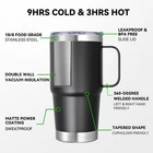 High Quality And Easy To Hold: The 20 oz travel coffee mug is made of thickened 304 18/8 stainless steel. Electro polished inside make you every sip of water pure and sweet. Matte powder coating outside is sweatproof. Equipped with a sturdy 360°welded handle let you easy to hold the coffee travel tumbler Hot And Cold Insulated Tumbler: 20oz stainless steel tumbler is double walled and vacuum insulated. It's cool to touch when filling with hot water also keeps your favorite beverage hot for 6 hours and cold for 12 hours. 20oz Capacity is just fine for daily use Multiple Color Options: The 20 oz tumbler with handle is crafted with stylish color powder coating, gives you multiple color options. Also make the tumbler advanced matte texture, delicate and sweat proof. Let you have a good mood when you use the water cup every time Cupholder Friendly: The travel coffee tumbler 20oz is designed with a tapered shape which fits most car cup holders, Diameter 3.38" large cup mouth makes it easier for you to clean the coffee mug Best Gift Idea: Each 20oz coffee travel mug comes with 1 * slide lid and 1 * reusable plastic straw. We also provide tumblers bulk option. The classic coffee tumbler is a stylish and practical gift for your friends, families, colleagues on Christmas, birthday, Valentine's Day, Mother's Day, Father's Day