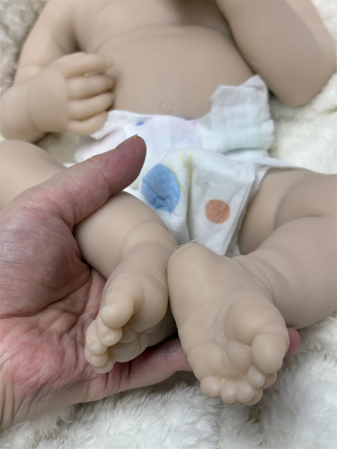 She is about 20 inch , Unpainted baby girl(Anatomically Correct) Net weight is :6.82 lb Function: Doll's limbs are flexible and poseable, the doll can sit, lay down easily and have a bath, but cannot stand up, speak, pee, blink PACKAGE LISTS: 1x Full silicone baby girl. 1x outfit (by random) ★Full body silicone: Our reborn baby doll's is made of Platinum Liquid Full Silicone, she is Solid reborn baby dolls ★Better than Vinyl material: Medical silicone material is more environmentally friendly than vinyl and safer for your babys. ★PVC Free, Non-Toxic ★More real feeling: Our doll's touching feeling is like a real baby than Vinyl dolls ★Great for Child and Best Choice For Adoption: Let your child feel that he is a playmate and not just a toy. Because it is Weighted Body for a "Real" Baby Feel. ★The best gift for your child to improve social ability and open up thinking. Children will acquire strong cognitive ability. ★The best choice for collecting baby dolls. So we think you should choose us, Not only give you the lifelike baby dolls, but also give you more choices. We have different sizes and genders realistic baby dolls. • Safety: Conforms to the safety requirements of ASTM F963 and EN71 for ages 3+ 【Kind Reminder】Each of our dolls is purely handmade, and the pictures are real-life photos. There may be slight differences between each silicone doll, and there may be slight flaws. If you mind, please choose carefully. 【User Notice】 Our reborn baby dolls' head has a silicone injection hole. The injection hole is one of the processes of making dolls. So it will leave a slight mark on its head. This is not a doll's quality problem. Tips: Silicone doll daily care can be done by patting talcum powder all over the body after cleaning the doll, keeping it dry and avoiding sticking.