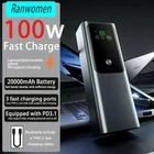 Ranwomen Powerbank 20000mAh 100W PD3.1 2PCS Battery Portable Bidirectional Fast Charging For Laptop Tablet Phone Apple Samsung Color:Gray,Blue Fast charging protocol:PD QC FCP SCP AFC UFCS and other Battery capacity:20000mAh(21700 specification lithium battery*4) The power level of the power bank is closely related to the temperature, the cable used, and the device being charged. Maximum output power:100W(PD3.1) Supported devices: mainstream laptops (USB-C charging), smartphones, tablets, mainstream electronic devices Screen material:LED Size:153*55*34mm Output: Type-C1: 5V/3A 9V.3A 15V/3A 20V/3A Type-C2: 5V/3A 9V/3A 15V/3A 20V/5A USB port: 5V/3A 9V12A 12V/1.5A 10V/2.25A Input: Type C1/2: 5V/3A 9V/3A 15V/3A 20V/3A Weight: 421 grams/ (power bank only) Highlight: *100W Total output,equipped with Dual USB-C and one USD-A port,quickly charge a laptop at 100W for maximun effciency *Smart LED display,track power levels and charging status at a glance. *Lightweight body, easy to carry. Package Include 1*20000mAh Powerbank 1*Fast charging cable 1*Manual 100w PD 3.1 Super fast charging LED display, intelligent temperature control 100W Bidirectional charging, fast charging 100W PD3.1 Fast charging,Intelligent power adjustment, suitable for most devices 20,000 mAh large battery with high battery density to ensure continuous output 421(laboratory data, not representative of final weight), small and lightweight, easy to carry LED screen intelligent display, charging data is clear at a glance Product specific data