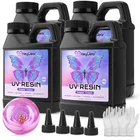 2000g UV Resin kit with Casting Tools -Super Clear, Hard, Low Odor, Premixed and Fast Curing for Jewelry Making, DIY Craft Decoration, Coating Less Curing Time: UV resin cures quickly when exposed to ultraviolet light, allowing for rapid project completion. This efficiency is ideal for those who need to speed up their crafting process or require quick turnarounds for their designs. Crystal Clear & Yellowing Resistance: After curing, UV resin becomes highly transparent, showcasing a crystal-clear finish that enhances the details of your work. It also resists yellowing over time, ensuring that the clarity and aesthetic quality of your pieces remain intact. Robust Hardness: uv epoxy resin experiences minimal shrinkage as it sets, which helps to maintain the accuracy and shape of your projects. It also cures to a hard, durable finish that provides long-lasting strength and resilience. Bubble Free: The formulation of uv cure resin is designed to minimize the formation of bubbles during the curing process. This ensures a smooth and flawless surface, reducing the need for additional finishing work and improving the overall quality of the finished item. Low Odor: uv glue has a low odor profile, making it more pleasant to work with compared to some other resins. This feature is particularly beneficial for indoor use or for those who are sensitive to strong chemical smells, contributing to a more comfortable and user-friendly crafting experience.