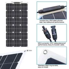 Features Flexible solar panels are increasingly being used in various settings including homes, RVs, boats, trucks, and trailers. Most homeowners are now using solar panels in attempts to reduce electricity costs. Others enjoy the convenience of having to power their electrical items when roaming around. ●Powerful panel with higher-than-average efficiency At around 21%, this solar panel is more efficient than many average devices on the market. In addition, it comes with an integrated blocking diode, which helps prevent reverse current drain, especially at night. This ensures optimum efficiency levels. ●Frameless panel for easy operation Owing to its 0.1inch thickness,this 80w flexible solar panel boasts a unique frameless design.You can be fixed onto the desired surface by glue, tape, grommet, or Velcro.This design ensures easy installation.Six metal-reinforced mounting holes for fixing screws,hanging and removing the panel while allowing easy transportation. ●Durable Panel made from PET material Speaking of the construction, the panel features a special PET film, which has high-temperature resistance, anti-fouling, while still being easy to clean. The durability of this solar panel is remarkable too, thanks to its water-resistant body. ●Flexible panel for installation anywhere As you would expect with flexible solar panels, the 100w flexible solar panel is bendable to a maximum of 45 degrees, thus encouraging mounting on curved surfaces. In fact, the body is such sturdy and flexible that it can be used on tight spaces or crowded areas that are usually out of bounds for conventional glass and aluminum panels. Package List: 1/2*100W Solar Panel with MC4 Cable https://ae01.alicdn.com/kf/H13a4ca9a829340378ca8e0e5338df64cv.jpg
