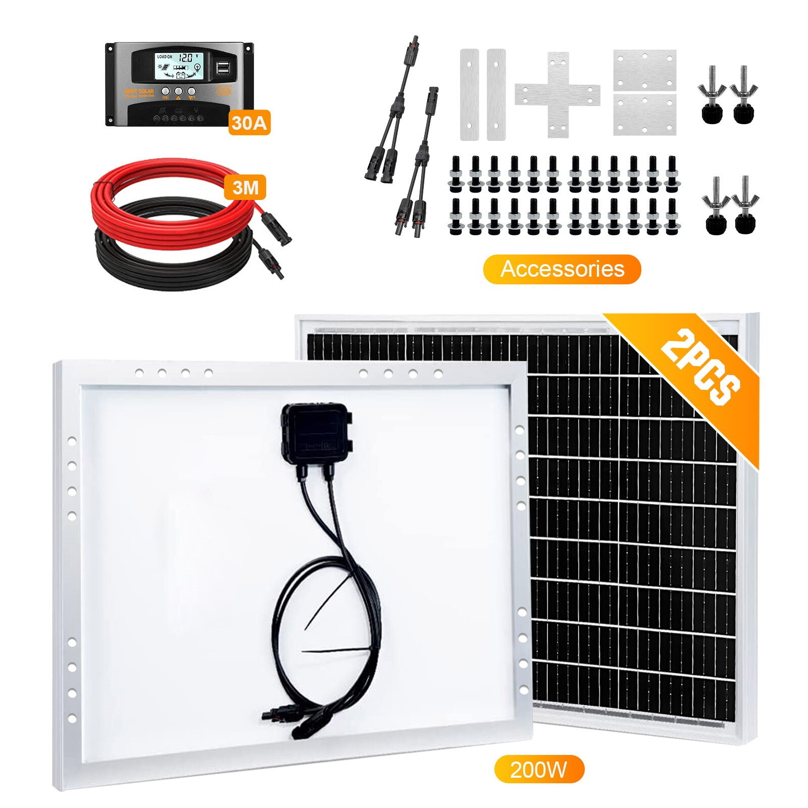 1000W Commercial Solar Street Light Flood Lamp LED Area Dusk To Dawn Wall Lamp 79.7 USD Free shipping 60A MPPT Solar Panel Charge Controller 12V/24V LifePO4 Regulator Auto Dual USB 17.99 USD Free shipping 30A/60A MPPT Solar Panel Battery Charge Controller 12V/24V Regulator Dual USB DC 13.99 USD Free shipping Outdoor Solar Wall Light LED PIR Motion Sensor Bright Flood Street Lamp 3 Modes 4.15 USD Free shipping Waterproof 90 LED Solar Power Wall Light PIR Outdoor Motion Sensor Garden Lamp 4.15 USD Free shipping 2000W 5kW Solar Street Lights Outdoor Dusk to Dawn Solar Security Flood Lights 99.98 USD Free shipping NEW-00021 200Watt Mono Solar Panel Kit High Converted PV Module Camping Home Marine Garden PRODUCT DESCRIPTION The world's leading innovative design. Compared with the 200W 18V solar panel on the market, our solar panel has very strong flexibility and practicability in multi-panel installation. Our kit has corresponding accessories. According to the voltage requirements of your charging equipment, DIY combination can be selected for series or parallel installation to reach 18V or 36V to meet your different needs. Features: 【High Conversion Efficiency】 Over 90% transferable power output in 10-year, 80% transferable power output in 20-year. Under 8 hours full sunshine: 200W solar panel generating 1.6KWH per day 【Upgraded Design】PFCTART monocrystalline solar panel upgraded the latest half-cut cell technology, which makes the solar panels obtain better and more stable performance. Compared to regular solar panel, half-cut cell technology can reduce power loss, lower solar panel temperature and reduce the impact of shading on performance. 【Easy to install】 It comes with pre-drilled mounting holes, solar connector leads, and a junction box. Allowing you to install, connect it to a controller, or expand with panels without breaking a sweat. The panels are made of premium Grade A+ monocrystalline solar cells that are more efficient than conventional polycrystalline solar cells. 【High Quality】 The panel is covered with a special glass to protect against the bad environmental conditions. Good quality frame, withstands high winds (2400Pa) and snow loads (5400Pa). 【Built to Last】 Corrosion-resistant aluminum frame of this solar panel provides extended outdoor use that ensures the panel can last for decades. The IP65-rated junction box is versatile due to its ability to withstand dirt, dust, debris, and low-pressure water jets. Specification: 200W Solar Panel Kit Maximum Power: 200W High Efficient Monocrystalline Each Solar Panel Product size: 76*58*3 cm(29.92*22.83*1.18inch) After Splicing Product size:76*116*3 cm(29.92*45.66*1.18inch ) Net weight:4.58 KG *2 Specification parameters of Each 100W Panel Maximum Power: 100W Open Circuit Voltage (Voc): 21.6V Maximum/Peak Voltage(Vmp): 18V Short Circuit Current (Isc): 6.2A Working Current (Iop): 5.55A Output Tolerance: ±3% Charge Voltage: 12V Frame: Aluminum alloy frame Temperature Range: -40℃ to +80℃(-40°F to +176°F) J-Box IP Rating: IP65 Product size:76*58*3 cm(29.92*22.83*1.18inch) Net weight: 4.58 KG How Many Solar Panels Do You Need To Buy? 1-4 Solar Panels For Boat power generation 1-6 Solar Panels For RV Power Generation 1-30 Solar Panels For House power generation More Welcome to consult ! Packages Includes 100W Solar Panel *2 1 to 2 Y link cable *1 pair 6 hole center post firmware *2 2 hole bezel firmware *2 Cross-shaped middle link firmware *1 (it is only used when 4 solar panels are assembled together) Mounting screws *1 pack 9.84ft Black Cable and Red Cable *1 pair 30A MPPT Solar Charge Controller *1 About Us Payment Shipping Returns Contact Us Welcome to our store, your support is the biggest driving force for us to move forward. Our main business is solar street lights, solar controllers, solar panels and so on. The product is directly connected with the factory to ensure product quality. Please rest assured to buy, we will provide you with a perfect shopping experience! We accept payment via Paypal only. Payment must be completed within 10 days. If you have any problems about payment, please contact us via ebay message. We only ship to confirmed Paypal addresses. Please comfirm that your paypal address is in line with your shipping address. Please kindly note that the combined shipping is not provided because the shipping fee is calculated by weight. Also, the each additional item means exactly the the same color and size. It takes about 7-15 working days to US; about 10-30 working days to other countries. Transit time may be a little delayed because of the bad weather and customs inspection. If you do not receive your item within 30 working days since payment finished, please contact us immediately for further assistance. If you have any issue about Item. Please contact us with 7 days since you receive the item and and return to us within 30 days from the delivery date for exchange or refund. If you need return, please contact our customer service representative, let us know the detailed problem and send us some pictures for confirmation. We strive for 100% customer satisfaction! Positive Feedback is very important to us. If you have any questions, please feel free to contact us via "Ask seller a question" . We will reply your email within 24 working hours. About Us Welcome to our store, your support is the biggest driving force for us to move forward. Our main business is solar street lights, solar controllers, solar panels and so on. The product is directly connected with the factory to ensure product quality. Please rest assured to buy, we will provide you with a perfect shopping experience! Payment We accept payment via Paypal only. Payment must be completed within 10 days. If you have any problems about payment, please contact us via ebay message. Shipping We only ship to confirmed Paypal addresses. Please comfirm that your paypal address is in line with your shipping address. Please kindly note that 