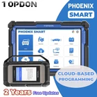 The Phoenix Smart® is part of TOPDON's new generation of intelligent diagnostic tools. Equipped with quad-core processors and a 10.1" HD touchscreen, this tool allows you to diagnose fault codes and trouble codes with one click. Its 12000mAh battery can work all day without fear of losing power. The Phoenix Smart also supports online programming for over 9 car brands and includes 2 years of free software upgrades. Combined with the MDCI Pro, this scanner gives you unprecedented coverage, intelligent diagnoses, and a wide array of maintenance functions. Highlights: ★ Our Phoenix Smart comes with 2-YEAR software updates for free ★ We provide a 5-year extended quality warranty ★ We provide 24/7 online tech support and guidance ★ The Phoenix Smart supports online programming for Mercedes-Benz, BMW, VAG (Volkswagen, Audi, Skoda, Seat), Porsche, Land Rover, Jaguar, Nissan, Subaru, Renault. Supports online coding for Mercedes-Benz, BMW, Porsche, and more. ★ Supports new protocols of J2534, DOIP,CANFD,D-PDU and RP1210 ★ VCI Connector supports DC 9-36V and can be extended to heavy trucks (The software and non-standard 16PIN connector should be purchased individually) ★ Guide Function for VAG. ★ Updated FCA functions for more newly released vehicles. ★ Supports ADAS tools and battery testers. ★ Topology map granting a clear picture of relational vehicle systems and status. ★ 34 maintenance services for mainstream vehicle models. ★ A full-system diagnostic (Engine, Transmission, Airbag, ABS, ESP, TPMS, Immobilizer, Gateway, Steering, Radio, Air Conditioning ) for over 200 vehicle models. ★ 5 full-system diagnostic basic functions: access ECU info, read DTCs, clear DTCs, read data stream, active test. ★ AutoVIN for automatic vehicle identification. ★Automatic generation of diagnostic reports, which can be sent to the computer via Email to print paper diagnostic reports. ★Online one-tap upgrade, convenient for users to update the software at any time. ★Smart scans all onboard systems and clears fault codes with 1 tap. ★Data stream recording for users to play back diagnostic activities. ★Feedback provides a way for users to submit issues and requests directly to development. ★Presents diagnostic data by digital, graphical, or combined data streams. ★Up to 4 data streams can be graphically displayed in a single interface. ★Save and compare data stream samples for accurate identification of problems. ★ Heavy Duty Kit Add-on (Optional), Heavy Duty Truck software requires additional purchase ★ ADAS Add-on (Optional), requires additional purchase Features: 1 The Phoenix Smart supports full system fault diagnosis of more than 200 vehicle brands. This tool offers OE-level diagnostics for Asian, American, European, and most of the models. 2 The Phoenix Smart supports Cloud-Based Programming functions for 9+ car brands, such as Mercedes-Benz, BMW, Volkswagen(Audi/Skoda/Seat), Porsche, Land Rover/Jaguar, Nissan, Subaru, Renault, and much more! 3 TOPDON's Phoenix Smart comes with the Phoenix MDCI Pro, a VCI that supports J2534, DoIP, CanFD, D-PDU, and RP1210 protocols. 4 The Phoenix Smart's software includes intuitive step-by-step guided procedures based on code for Volkswagen, Audi, Skoda, and SEAT vehicles. 5 This advanced diagnostics tool supports FCA Gateway Access, allowing you to work on the most modern makes and adjust protected functions. 6 The Phoenix Smart Utilizes Topology mapping, displaying the vehicle’s entire sensor system. Raw data is transformed into clear graphics, so technicians can see the entire status of the car system and get right to the vehicle’s issues. 7 With the Phoenix Smart, users can unlock special features and settings of vehicles. Advanced functions include enabling Video-In-Motion via DVD or USB, disabling seatbelt lights, and many other options. Applicable to vehicle makers such as Audi, Volkswagen, BMW, Porsche, Toyota, and more! 8 Offer more to your customers with TOPDON’s ADAS calibration. The Phoenix Smart can pair with a TOPDON Phoenix ADAS Mobile package to easily calibrate intricate driving assistance functions. Functions: The Phoenix Smart offers Full System Diagnostics for over 200 Vehicle Makes ✅ Essential Functions: ECU Lookup, Read Fault Code, Clear Fault Code, Read Data Streams, Actuation Test ✅ Special Features: Cloud-Based Programming, Online Coding, 34 Maintenance Services, VAG Guided Function, and More 🚘 Cloud-based programming on 13 Car Brands including Mercedes-Benz Until 2020, BMW Until Feb. 2021, AUDI Until 2021, VW/SKODA/SEAT Until 2021, Porsche Until 2020, Jaguar/Land Rover Until 2017, Nissan Until 2020, Subaru Until 2020, Renault Until 2021 (Part of modes Supported ), Hyundai Until 2018 (Part of modes Supported) 🚘 Online coding available on Mercedes-Benz, BMW, Volkswagen, Audi, Skoda, Seat, Porsche, Land Rover, Jaguar, Nissan, Subaru, Renault 👍 34 Maintenance Services: Oil Reset (53 brands), SAS Reset (44 brands), EBP Reset (41 brands), BMS Reset (31 brands), DPF (39 brands), ABS Bleeding (34 brands), IMMOBILIZER (45 brands), Sunroof Reset (4 brands), Suspension Reset (11 brands), Gearbox Reset (8 brands), AFS Headlamp Reset (9 brands), Injector Coding (41 brands), Gear Learning (3 brands), TPMS Reset (38 brands), Throttle Adaptation (37 brands), A/F Reset (5 brands), ADBLUE Reset (8 brands), Coolant Bleed (5 brands), EGR Reset (7 brands), Language Change (7 brands), NOx Sensor Reset (8 brands), Odometer Calibration (9 brands), Seats Calibration (18 brands), Motor Angle Calibration (5 brands), Reset AIRBAG (4 brands), Transport mode (13 brands), TYPE Reset (5 brands), Windows Calibration (15 brands), Power Balance (9 brands), Gas Particulate Filter Regeneration (14 brands), AC System Relearn (10 brands), High Voltate Battery Diagnostics (7 brands), STOP/START (5 brands), Intelligent Cruise Control System 👍 Guided procedures and functions streamline the repair process. Follow the promp
