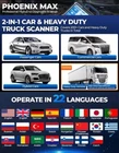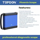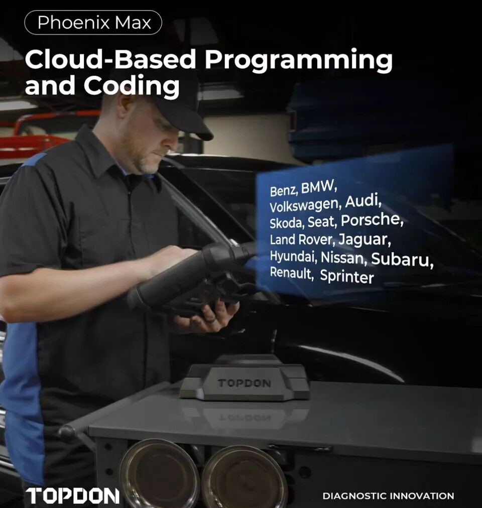 TOPDON PHOENIX MAX WITH 2-YEAR OF FREE SOFTWARE UPDATES The Phoenix Max is TOPDON's newest cutting-edge automotive diagnostic scanner. With a 13.3" screen, this all-in-one tool offers a wide array of functionalities that will expand any technician's capacity to complete even more jobs. The Phoenix Max includes a 4-channel oscilloscope , ADAS compatibility, and Topology Mapping that shows all car systems in one view. Its updated MDCI (Modular Diagnostics and Communication Interface) includes the latest protocols, allowing professionals to perform more complex repairs on various automotive and heavy-duty vehicles with optional add-on software. The differences on TOPDON PHOENIX SERIES products: ★ For the software updates, only Phoenix SMART/MAX comes with 2-year free software updates. ★ For the top functions, Phoenix SMART/MAX can do Cloud-based programming on up to 13 car bands, PLUS/LITE2 cannot. ★ For the online FFS activation on VW&Audi, Phoenix SMART/MAX/ELITE can do, Phoenix PLUS/LITE2 cannot. ★ For the DTC guided functions on Mercedes-Benz, BMW, Porsche, Audi, VW, Phoenix SMART/ MAX can do, Phoenix ELITE/PLUS/LITE2 cannot. ★ For the Oscilloscope, Phoenix MAX comes with the 4-CHANNEL oscilloscope, others are required to pay extra if needed. ★ For the heavy-duty compatibility, Phoenix SMART/MAX can do, but HD software upgraded & HD connector kit require purchase if needed, others do not support heavy-duty diagnostics. ★ For the memory ROM, Phoenix SMART comes with much more in 128GB , Phoenix MAX comes with the biggest ROM 256GB , and the others (ELITE/PLUS/LITE2) are less than 64GB. ★ For the screen size, Phoenix MAX comes with the largest of 13.3-inch, SMART/ELITE/PLUS are 13-inch. ★ For the communication of wireless Bluetooth connector, Phoenix SMART/MAX are MDCI PRO , protocols including CANFD, DOIP, D-PDU, J2534, RP1210, Phoenix ELITE is MDCI only with CANFD, Phoenix Plus is VCI Dongle, no protocols included. HIGHLIGHTS: ★ Our scanner PHOENIX MAX comes with 2 years of FREE software updates. ★ We provide a 5-year extended warranty, no worry about shopping. ★ We are 24/7 online tech support from our official technicians' team, helping solve problems shortly. ★ Our scanner can be used in global regions, including the US, EU, ASIA, and more. No ip limit. Features: ✅ Get More Done - Heavy Duty Optional The Phoenix Max includes 2 years of automotive updates and HD software can be added for an additional fee, making it an all-in-one tool. ✅ Cloud-Based Programming on 13+ Car Brands ✔ Audi Guide Function, Personalization, Module Programming ✔ BMW Coding, Initialization, Personalization (E & F series) module programming, DTC repair guide ✔ Land Rover/Jaguar Module Programming ✔ Mercedes Benz Module programming, SCN Coding ✔ Nissan Module Programming ✔ Porsche Module Programming, Personalization ✔ Toyota Personalization ✔ Volkswagen Guide Function, Personalization, Module Programming ✅ The Included Phoenix Scope The included Phoenix Scope allows you to diagnose component and circuit faults with even more precision. With its color-coded channels, you can analyze and compare multiple components with ease. Fix those hard-to-find intermittent problems by evaluating sensors, ignition components, pressure/vacuum-related faults, and much more with pinpoint accuracy. ✅ The Phoenix MDCI Pro Has You Covered TOPDON’s Phoenix Max comes with the Phoenix MDCI Pro, a VCI that supports J2534, DoIP, CanFD, D-PDU, and RP1210 protocols. This MDCI Pro’s unparalleled coverage allows you to offer OE-level services to newer and more modern vehicles. With the Phoenix MDCI Pro, you will never be forced to outsource! ✅ Big Display for Big Productivity Featuring a large 13.3”, 1920 x 1200 display, 8G RAM/256G ROM, and Android 9, the Phoenix Max will take on whatever you throw at it with fast and smooth operation. ✅ All-day Battery Life A convenient docking station is included, so your Phoenix Max is always charged and within reach. The 18600 mAh, 3.8V battery will power through the day, just like you. 8 hours of run time will ensure you’re never down. ✅ Extended Capability Compatible with Phoenix ADAS, BTMobile Pros, and T-Ninja Box. ✅ Explore More Features On the Phoenix MAX ✔ 41 maintenance services for mainstream vehicle models. ✔ Topology map granting a clear picture of relational vehicle systems and status. ✔ Full-system diagnostic (Engine, Transmission, Airbag, ABS, ESP, TPMS, Immobilizer, Gateway, Steering, Radio, Air Conditioning) for over 200 vehicle models. ✔ 5 Full-system diagnostic basic functions: access ECU info, read DTCs, clear DTCs, read data stream, active test. ✔ AutoVIN for automatic vehicle identification. ✔ Guide Function for VAG. ✔ Data stream recording for users to play back diagnostic activities. Specifications on PHOENIX MAX: Display: LCD 13.3 inches, 1920 x 1200 pixels CPU: 8-Core Processor, 2.0 GHz, Android 9.0 RAM: 8G ROM: 256G Battery: 18600 mAh / 3.8V Operating Voltage: 9~18V Storage Temperature: -20℃~60℃(-4℉~140℉) Working Temperature: 0℃~50℃(32℉~122℉) Product Dimensions: 364 x 285 x 82mm (14.30 x 11.20 x 3.20 inches) Package Dimensions: 673 x 474 x 201mm (26.50 x 18.66 x 7.91 inches) Net Weight: 3.18kg(7.0 lb) Multilingual Support: 24 Languages English, German, Spanish, French, Italian, Japanese, Portuguese, Russian, Polish, Turkish, Dutch, Hungarian, Chinese (Traditional), Korean, Finnish, Greek, Slovak, Romanian, Arabic, Croatian, Slovenian, Czech, Danish, Norwegian Specifications on PHOENIX MDCI PRO: CPU: Cortex-A7 + Cortex-M7, Dual Processor Operating System: Linux RAM: 256M ROM: 8G Display: TFT, 3.97 inches, 320 x 480 pixels Wi-Fi: 2.4GHz/5GHz, Dual Band Working Temperature: 0℃~50℃(32℉~122℉) Operating Voltage: DC 9~36 V Dimensions: 196 x 135 x 42.8 mm(7.72 x 5.31 x 1.69'') New Protocols Supported: J2534, CAN FD, DOIP, D-PDU, RP1210 Package: Phoenix Max Base/docking station Phoen