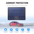 Product Description: It can be used as an alternative charger for cars, trucks, caravans, boats, motorcycles, RV batteries or any 12V lead acid battery. It is waterproof and can be placed outdoors. There are built-in diodes in the alligator clip to help prevent reverse charging. You can install this item in your car and keep charging during the day. Provides 2 alligator clips and charging cable for all kinds of equipment, emergency lights, advertising lights, traffic lights, electric fans, solar water pumps, motorcycles, boats, etc. Product Specification: Colour: Black Material: Panel: Monocrystalline silicon USB output: 5V, 2A (maximum) Solar output: 12V Solar panel type: solar Conversion efficiency: 23-24% Product interface: USB, DC Output interface: DC / dual U No-load voltage: 14V DC and USB 5.2V Load voltage: 12V DC and USB 5.0V Output current: 600 mA (max) USB 2.0 output: 5V 600mA Applicable to: mobile phones, mobile power packs, laptops, tablets, GPS, cameras, USB fans, USB lights, etc. Package Include: 1 x Solar panel 1 x Alligator clip 1 x Cigarette lighter Any problems please contact us at any time before leaving a negative/neutral feedback. Many thanks to you.
