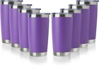 20oz Stainless Steel Tumbler Bulk with Lid, Double Wall Vacuum Insulated Travel Mug, Powder Coated Coffee Cup Powder Purple, 8 DURABLE EXTERIOR WALL: The tumbler pack are made with high-grade 304 18/8 Food Grade steel, anti-rust and lead free, unbreakable and stands up to heavy use through every season. Clear press-on top helps you see what's inside. EXCELLENT TEMPERATURE RETENTION DESIGN: The bulk cups keep your on-the-go beverages hot for three hours or cold for nine hours, perfect for daily use. MULTIFUNCTIONAL USE: Superior powder coating finish against chips and scratches, sweat free, outside stays dry. Grip fits easily in your hand, fits in most vehicle holders. EASY CLEANING: Hand washing is recommended, electro-polished interior doesn't transfer flavor & no aftertaste. You don't have to worry about your morning or afternoon teas being ruined. SATISFACTION GUARANTEE SERVICE: We are determined to provide the best product and high quality service. If you have any question, pls contact me as soon as possible. The video showcases the product in video guides you through product video compares multiple video shows the product being unpacked.