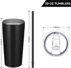 20oz Tumbler Bulk with Lid and Straw 12 Pack, Stainless Steel Vacuum Insulated Tumbler, Double Wall Coffee Cup Travel Mug, Black DOUBLE WALL INSULATION: Our classic water tumblers are double walled and vacuum insulated, which keeps your drinks hot up to 4 hours or cold up to 9 hours. The high-quality, no sweat design ensures your desk stays free of condensation STAINLESS STEEL SKINNY TUMBLER: Made of food grade stainless steel with Paint coating, no more worries about peeling or durable construction and splash-proof design make the travel tumbler great for indoor and outdoor use, it's an ideal coffee tumbler for keeping. Dishwasher cleaning is not recommended PORTABLE&ECO-FRIENDLY: Thanks to its slim and sleek body, it is easy to carry and store , also it fits in most cup holders. BPA free slider lid and plastic reusable straw are totally eco friendly and safe for drinking PERFECT GIFT SET: Each insulated tumbler comes with 1 splash-proof lid and 1 plastic straw. This 20oz tumbler is a stylish and practical gift for your friends, families, or colleagues on birthday, Christmas, Valentine's Day, Halloween, Mother's Day or Father's Day PRACTICAL TUMBLER: The coffee tumbler with sliding lid can be used as wine cups, champagne cups, water cup or sports fan travel mugs, suitable for parties, picnics, self-driving travelling, boats, beach, pool, camping and hiking, etc