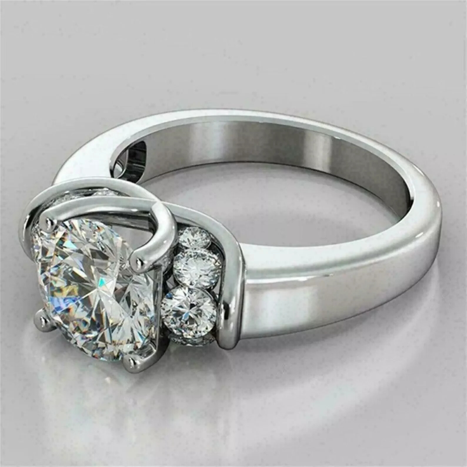 $ 8.582Ct Round Lab Diamond Curved Engagement Ring in 14K White Gold