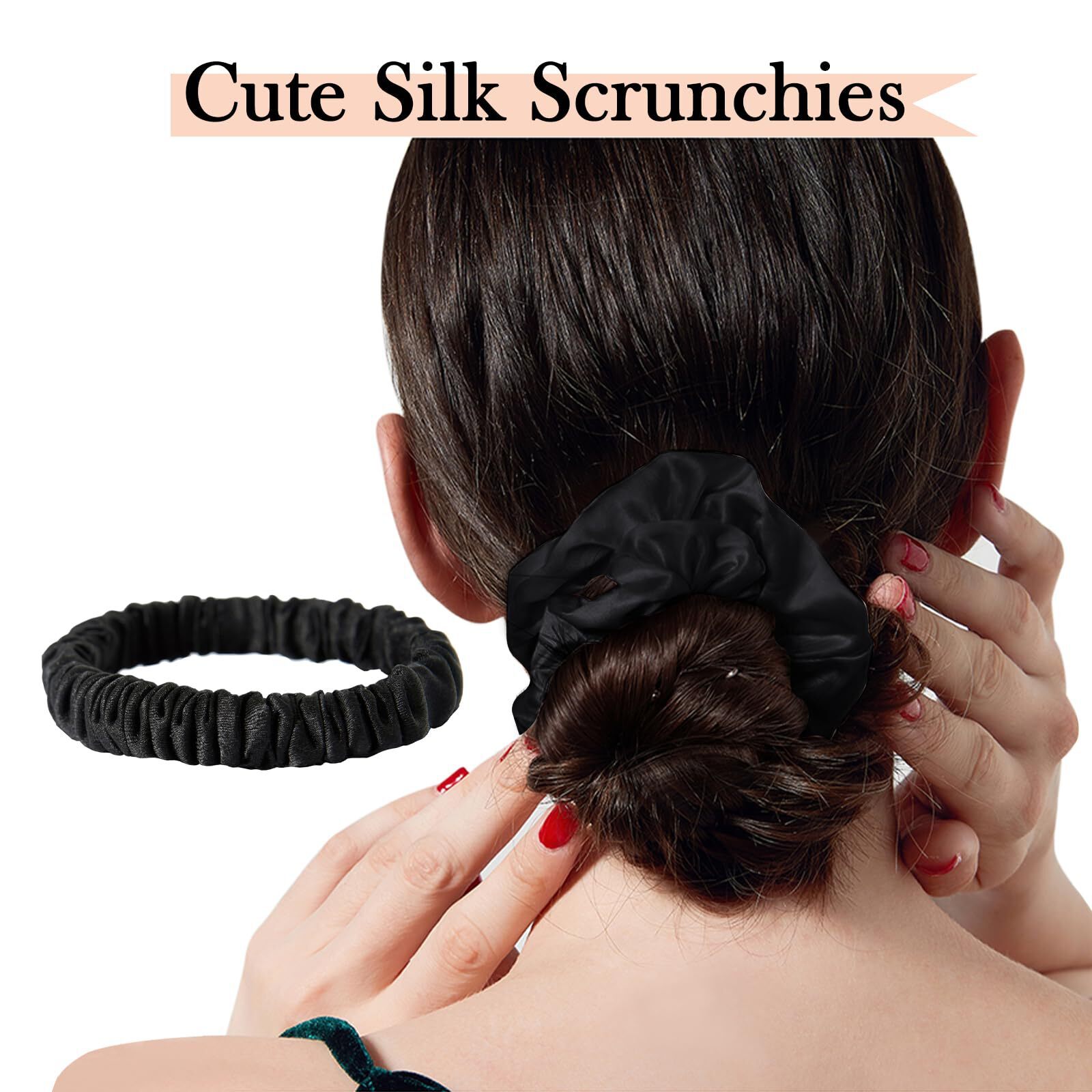 These silk scrunchies are a game-changer for my hair! Super soft, gentle, and keeps my hair tangle-free—no more breakage or painful marks. The elastic holds well without being too tight, and the quality feels luxurious. Perfect for all-day wear! Love having 5 in black—stylish and practical. A must-have for anyone who cares about hair health.