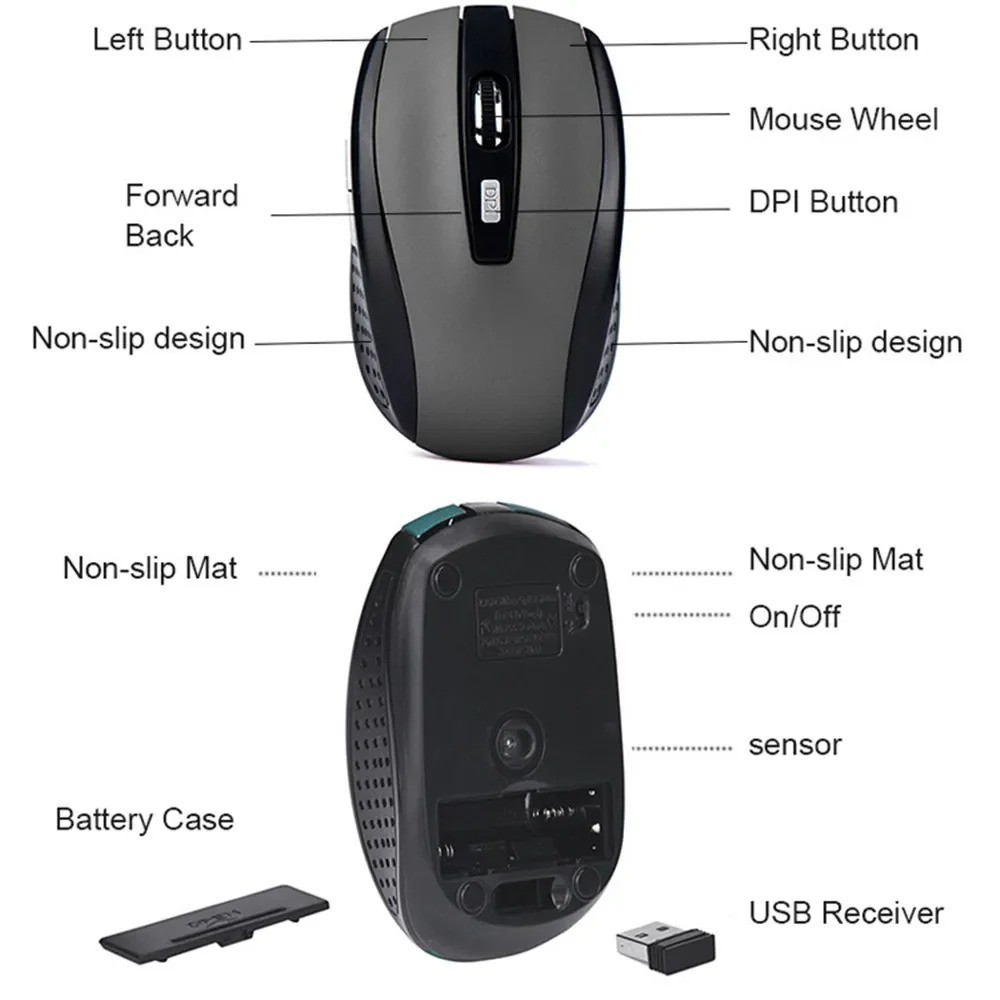 🖱️ Work Smarter & Smoother with the 2.4G Wireless Optical Mouse Enjoy seamless control and comfort wherever you go with this Portable 2.4G Wireless Optical Mouse . Designed for productivity and comfort, it’s ideal for laptops, desktops, and notebooks — whether at home, in the office, or on the move. 🌟 Key Benefits Stable Wireless Connection: Enjoy 2.4GHz wireless transmission for smooth, lag-free performance up to 10 meters away. Adjustable DPI Levels: Easily switch between adjustable DPI modes (up to 1600DPI) for precise control — great for work, design, or casual gaming. Ergonomic Comfort Design: The curved shape fits naturally in your hand, reducing fatigue during long use. Suitable for both right and left-handed users. Rechargeable & Eco-Friendly: Designed for convenience and sustainability — simply recharge and reuse (battery not included). Plug & Play Setup: No drivers needed. Just plug the USB receiver into your device and start using immediately. Universal Compatibility: Works with Windows, macOS, Linux, and Chrome OS on laptops, PCs, and notebooks. 🔧 Technical Specifications Product Type: 2.4Ghz Wireless Optical Mouse Wireless Range: Up to 10 meters Resolution: Adjustable up to 1600–2000 DPI Buttons: 4–6 functional buttons Interface Type: USB Receiver Hand Orientation: Ambidextrous (Both Hands) Operation Mode: Opto-electronic Power Type: Rechargeable (Battery not included) Gross Weight: 80g (Lightweight & Portable) Compatibility: Laptop, Desktop, MacBook, Notebook, PC