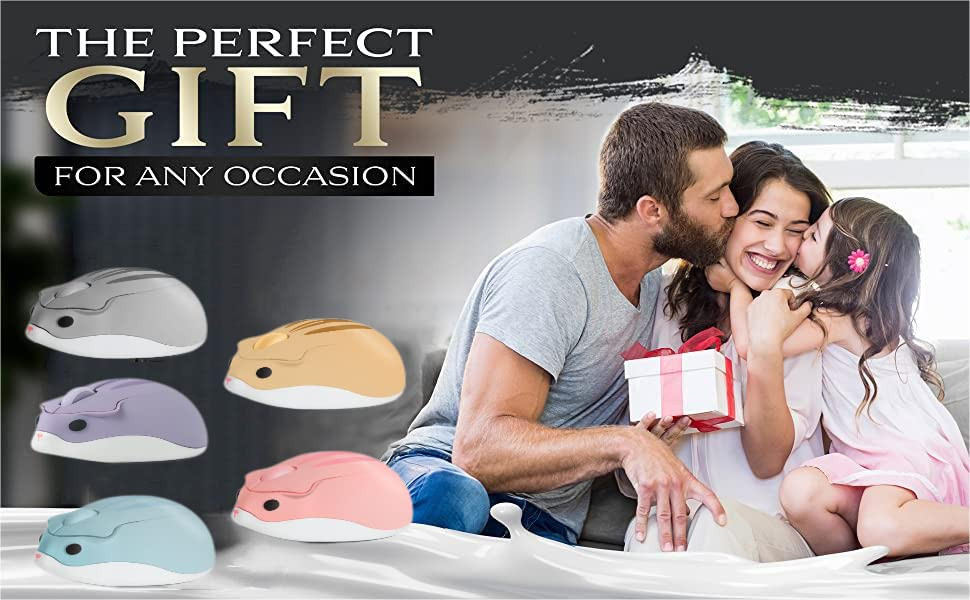 COMFORTABLE HAND FEELING - The animal hamster has passed multiple color modulation and hand feel test, reducing the caused by prolonged use of the ,helping maximize your feeling of use! NOVELTY CUTE - Creative hamster shape, add fun to the typing process; Both right and left button are designed on ears and the roller wheel is on the top of the head,no need to change your operation habbit PLUG AND PLAY - Tiny wireless receiver conveniently slots into your computer's USB port, taking up minimal space. Powered by AA battery ( not included ) STABLE CONNECTION - The 2.4 GHz wireless provides a powerful, reliable connection, break the limitation of messy cable, effective up to 10 meters of range 【PERFECT GIFT】This cute gaming is a perfect christmas gift for girls boys men women mom dad daughter wife boyfriend grandparents grandma grandpa teenage boy girl sister teacher brother coworker neighbor husband nurse WIDE COMPATIBILITY - Well with Windows7/8/10/XP, Vista7/8 and Linux etc. Fits for desktop, laptop, PC, Macbook and other devices; Perfect for work and entertainment in home or office; Backed by 1-Year Limited Wireless Cute Hamster Shape Optical ,1200 DPI Noise Reduction Ultra Portable Travel ,2.4 GHz with USB Receiver for PC Mac Laptop Computer Girl School Gift.Perfect Mothers Day Gift for Mother. Perfect Fathers Day Gift for Father