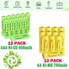 24Pcs AAAAA Rechargeable Batteries Ni-Cd Ni-Mh 600mAh Solar Light AA AAA US Warm Tips: Before use, please remove the plastic packaging film of the battery. AAA Rechargeable Batteries Features: 1. Widely use: Our AAA batteries rechargeable is perfect used for solar powered garden lights, landscaping lights, lawn lights, etc. replace all alkaline disposable batteries that power your TV remotes, wireless mouse and keyboards, gaming controllers, RC remotes and others. 2. Easy to install and use: Remember to Keep your solar light switch on,Simply install the AAA Ni-CD batteriy in your solar lights and allow sunny day for recharging.Triple a solar batteries for outdoor solar lights can be charged via solar cell lights or standard charging units. 3. The 1.2v Ni-CD rechargeable batteries can be charged up to 500 times, save money from buying huge of one-time used batteries. Power life up to 25 months, longer life in the high drain devices than normal Alkaline batteries. 4. Please note that this is AAA size batteries---Please use up the power each time, then recharge it or it will affect its capacity and lifetime. 1.2v AAA Battery Specification: Voltage:1.2V Recycling above 500times Dimension: 10 Dia x 44 H mm Rapidly charging and reliable service life Ideal for fast discharge applications / solar lights 1.2v AA Battery Specification: Voltage: 1.2V Capacity: 700mAh Ni-MH AA Lithium Batteries Size: Height: 43.6±0.5mm ; Diameter: 10.1±0.2mm Extreme Working Temperatures: -40 to 140F Working Humidity: ≤70% Package Included: 12x Ni-CD AAA Rechargeable Batteries 12x NI-MH AA Rechargeable Batteries On Jan 9, 2025 at 10:42:30 PST, seller added the following information: