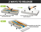 HEAVY-DUTY EPOXY RESIN MOLD - These molds are made from 4/5 inch (2cm) thick HDPE material. Compared to silicone molds and other lightweight resin molds, they can withstand high temperatures and pressures during the resin curing process without deformation. For users who frequently create resin artworks, this reusable mold is an excellent investment. CNC PROCESS - Our large resin molds are cut and drilled using precision CNC equipment, and each panel is tightly connected with stainless steel bolts and threaded inserts to ensure a solid structure. This design makes the inner wall of the mold vertical, avoiding the protruding weld lines common in one-piece no seal molds, ensuring a neat appearance of the final product, and reducing post-finishing work and resin waste. LEVELING AND FASTENING SYSTEM - This resin mold features 2 levels and 4 adjustable feets for real-time level monitoring and adjustment, 2 adjustable pressure bars and 4 clamping blocks to easily secure the wood blank without the need for additional fixing tools. Whether you are making cutting boards, trays, river tables or coffee tables, our resin table molds can help you better complete various projects. EASY DEMOULDING - Since this large epoxy resin mold is made of HDPE material, which has self-lubricating properties and the resin does not easily adhere to its surface. Easily release by tapping it with a rubber mallet or taking apart the short sides of the mold. Easily handle various demoulding challenges. PRE-ASSEMBLED SHIPPING - Our resin mold bodies are pre-assembled before shipping, no complex assembly issues (please note: silicone sealing of the seams is required before pouring resin). Additionally, we have an after-sales service center in California. Our support team can provide timely post-sales support.