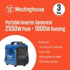 Inverter gas generator with 2,550 peak watts/1,900 running watts RV Ready Outlet with 3-Year Limited Warranty Westinghouse RV Ready unit offers LED control panel lights The Westinghouse iGen2550c Portable Inverter Generator produces 2,550 peak watts and 1,800 running watts, making it perfect as an emergency backup for home use or for recreational use. It's equipped with an RV Ready TT-30R 30A outlet that conveniently hooks to your travel trailer, keeping the air conditioner and travel necessities up and running all day long. The iGen2550c can simultaneously power most refrigerators and large appliances as well as any home necessities you may need while traveling. Powered by a 4-Stroke OHV Westinghouse engine, the iGen2550c is engineered to automatically ad... Fitness Equipment Best choice of motor parts 2,550W Gas Powered Portable Inverter Generator w/Recoil Start,Quiet Technology,L Inverter gas generator with 2,550 peak watts/1,900 running watts RV Ready Outlet with 3-Year Limited Warranty Westinghouse RV Ready unit offers LED control panel lights The Westinghouse iGen2550c Portable Inverter Generator produces 2,550 peak watts and 1,800 running watts, making it perfect as an emergency backup for home use or for recreational use. It's equipped with an RV Ready TT-30R 30A outlet that conveniently hooks to your travel trailer, keeping the air conditioner and travel necessities up and running all day long. The iGen2550c can simultaneously power most refrigerators and large appliances as well as any home necessities you may need while traveling. Powered by a 4-Stroke OHV Westinghouse engine, the iGen2550c is engineered to automatically adjust its engine speed to produce only the amount of power needed for enhanced fuel efficiency. It's lightweight and convenient, weighing 42 lbs. with a built-in carrying handle for easy portability. The iGen2550c has an ultra-low tone for community-friendly use, operating as low as 52 dBA which is quieter than the average conversation. Unlike traditional generators, the iGen2550c safely powers sensitive electronics like plasma/LCD televisions, laptops, tablets, and mobile devices by producing clean, stable power at less than 3% THD. If you need more power, the iGen2550c is parallel capable and can be paired with another Westinghouse Inverter Generator using the included parallel cables. The iGen2550c has built-in safety features including low oil shutdown and overload protection while backed by a 3-year limited warranty and lifetime technical support. Bring power to your home during a power outage or recreational activities 2550-peak Watts, 1900-running Watts and runs for up to 12 hours on a 1.11 gal. gas tank Enhanced fuel efficiency - variable engine speeds allow 30% to 50% higher fuel efficiency than a traditional generator iGen2550c is compact and lightweight, weighing only 42.4 lb. and features a built-in carry handle for easy transportation Real-time LED display with runtime, remaining fuel, load/output, volts and lifetime hours data Super quiet - as low as 52 dBA with double-insulated acoustic enclosure, asymmetrical cooling fans, and low tone mufflers to reduce operating noise Safely powers sensitive electronics such as laptop computers, cell phones, and more with less than 3% THD (2) 120V 5-20R standard household outlets,?(1) RV Ready 120V TT-30R receptacle with rubber outlet covers, and (2) 5V USB ports with rubber outlet covers All westinghouse portable generators are functionally tested in the factory and may contain minimum residual oil and/or fuel odor Click here to shop all Westinghouse products Application:Campsite,Emergency Use,Job Site,RV,Tailgating|Application:Campsite,Emergency Use,Job Site,RV,Tailgating|Built-in inverter:Yes|Built-in inverter:Yes|CO Shutoff Capable:Yes|CO Shutoff Capable:Yes|Color Family:Blue|Color Family:Blue|Engine Displacement (cc):80|Engine Displacement (cc):80|Engine Make:OEM Branded Engine|Engine Make:OEM Branded Engine|Features:Automatic Voltage Regulation,Built-in Fuel Gauge,Built-in Hour Meter,CO Shutoff,GFCI Outlet(s),Hour Meter,Low Oil Shutdown,Overload Protection,USB Port|Features:Automatic Voltage Regulation,Built-in Fuel Gauge,Built-in Hour Meter,CO Shutoff,GFCI Outlet(s),Hour Meter,Low Oil Shutdown,Overload Protection,USB Port|Fuel Tank Capacity (gal.):1.14 gal|Fuel Tank Capacity (gal.):1.14 gal|Fuel Technology:Single Fuel|Fuel Technology:Single Fuel|Full load fuel consumption (gallons/hour):.17|Full load fuel consumption (gallons/hour):.17|Generator Voltage:120|Generator Voltage:120|Half-Load Run Time (Hours):6.5|Half-Load Run Time (Hours):6.5|Horsepower (hp):0 hp|Horsepower (hp):0 hp|Included:Oil Funnel,Spark Plug Wrench|Included:Oil Funnel,Spark Plug Wrench|Number of Receptacles:5|Number of Receptacles:5|Operational Volume (dB):52|Operational Volume (dB):52|Outlet Type:120V 20A,120V 30A|Outlet Type:120V 20A,120V 30A|Power/Fuel Type:Gasoline|Power/Fuel Type:Gasoline|Product Weight (lb.):43.2 lb|Product Weight (lb.):43.2 lb|Running Wattage:1900|Running Wattage:1900|Start Type:Recoil Start|Start Type:Recoil Start|Starting Wattage:2550|Starting Wattage:2550|Suggested Uses:Mobile Devices,Power Tools,Small Appliances,Small Electronics,Sump Pump|Suggested Uses:Mobile Devices,Power Tools,Small Appliances,Small Electronics,Sump Pump|Certifications and Listings:EPA Approved|Certifications and Listings:EPA Approved|Manufacturer Warranty:3 Year Limited|Manufacturer Warranty:3 Year Limited|Product Height (in.):17.5 in|Product Height (in.):17.5 in|Product Length (in.):19 in|Product Length (in.):19 in|Product Width (in.):11.5 in|Product Width (in.):11.5 in Item Specifics UPC 850032657020 MPN iGen2550c Brand Westinghouse Type Inverter Generators Item Width 11.5 in Item Height 17.5 in Item Weight 43.2 lb Payment If you do not have a PayPal account, to get started and buy your first item with us is very easy. Simply click on the 'Buy It Now' button and follow the eBay checkout steps. Select PayPal as the payment method y