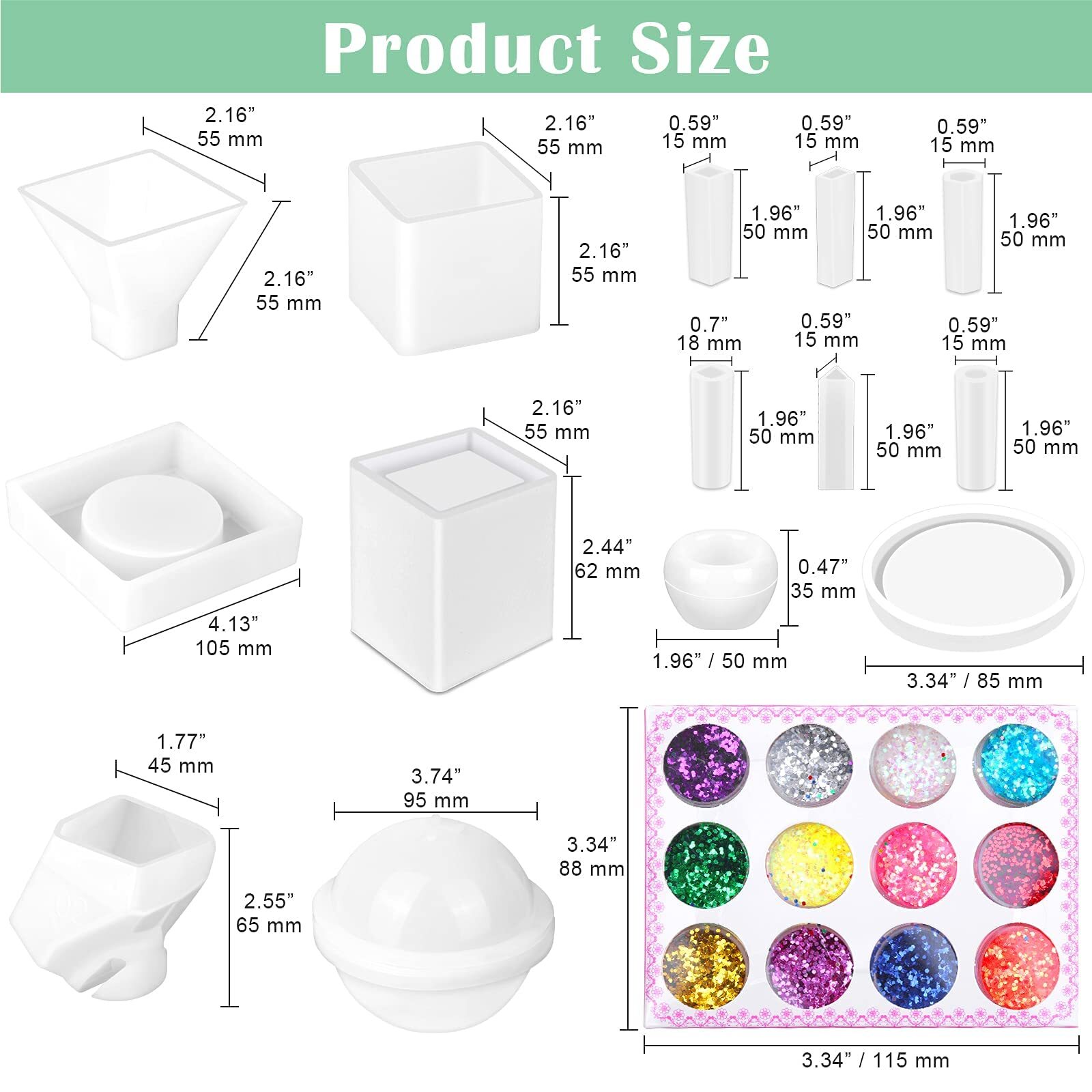 Silicone Resin Molds Kit 26PCS, Epoxy Molds, Large Casting with 12 Glitter Sequins for UV Casting, Including Sphere, Cube, Pyramid, Square, Coaster, Stone & Pendants 【DIY Epoxy Resin Molds Set of 26pcs】Box Resin Molds Kit comes with 1 square silicone mold, 1 round coaster resin mold, 1 pyramid resin mold, 1 flower pot resin mold, 1 pen holder resin mold, 1 ball shape resin mold, 1 stone shape resin mold, 6 diamond pendant resin molds and 12 color Decorative Sequins. Please give full play to your creativity. 【Reusable & Eco-friendly Silicone Coaster Mold】The smooth and clean silicone square resin mold is made from premium silicon which can be used for unlimited casting. Silicone Epoxy Mold is the ideal material with which to make a resin mold, as it acts as a natural release agent. This material is non-toxic, environmentally friendly, and non-allergenic, making it a great option for everyone. 【Easy-to-Demold & Clean Epoxy Molds】Highly Flexible silicone pyramid mold for resin makes it even easier to remove your resin castings with ease. After the resin fully cured, you just need to add soapy water and then take your finished items out. Please hand wash the mold with soap water and let it air dry after use. 【Wide Application】This silicone mold for resin set is ideal for beginners. There are many different available shapes, and you don't need to make resin molds yourself. These resin molds can be used for making coasters, plant pot, pen holder, square holder and other practical items or decorative ornaments and desk decorations. The epoxy molds can be used to make unique handmade gifts for your loved ones and friends. 【Great Gift Idea】The epoxy molds can be used to make unique handmade gifts for your loved ones and friends. lf you have any questions or issues regarding the epoxy resin molds set please do not hesitate to send the seller a message through Amazon and we will respond within 24 hours. The Best Resin Molds: RESIN Silicone Molds When learning how to make something with epoxy resin, you are going to need silicone molds. Those that are still testing the waters when it comes to silicone molds may prefer to begin with a pre-made set rather than making them yourself. A set of 15pcs epoxy molds is perfect for learning how to make resin item. We have provided the best beginner silicone mold kit that includes both basic and complex shapes, providing you with a great starting point. How to better extend the service life of this resin molds kit? 1. Make sure your epoxy resin molds are smooth and clean before use. 2. When you release the item out of the silicone resin mold, please make sure your resin piece is completely cured or you will get a defective one. 3. When you de-mold, you can use a resin release spray and let it dry in the resin mold, which may help extend your molds’ life. If you don't have, you may use a baby wipe or a drop of soap water as a release agent, work it down to the silicone resin mold, then push the resin craft from the bottom. 4. Clean the resin molds silicone with soap water or rubbing alcohol when necessary, then wipe dry with a soft cloth. 5. Keep the resin silicone mold away from direct sunlight, dust and fire. Package Includes: 1 x Square Resin Mold (4.13x4.13 inches) 1 x Coaster Resin mold (3.34x3.34 inches) 1 x Pyramid Resin Mold (2.16x2.16 inches) 1 x Flower pot Resin Mold(1.96x0.47 inches) 1 x Pen holder Resin Mold(2.16x2.44 inches) 1 x Ball shape Resin Mold(3.74x3.74 inches) 1 x Stone shape Resin Mold(1.17x2.55 inches) 6 x Diamond pendant Resin Mold (hight: 1.96 inches) 12 Colors Decorative Sequins Shipping We offer FREE shipping on all orders! We ship within Three business days of payment, usually sooner. We use a selection of shipping services such as UPS, FedEx, USPS etc. We only ship to the lower 48 states, no APO/FPO addresses or PO Boxes allowed. Local pickups and combined shipping options are not provided at this time. Return You can return a product for up to 30 days from the date you purchased it. Any product you return must be in the same condition you received it and in the original packaging. Please keep the receipt. Payment We accept payment by any of the following methods: PayPal Please pay as soon as possible after winning an auction, as that will allow us to post your item to you sooner! Feedback Customer satisfaction is very important to us. If you have any problem with your order, please contact us and we will do our best to make you satisfied. Contact Us If you have any queries, please contact us via ebay. We usually respond within 24 hours on weekdays. Please visit our eBay store to check out other items for sale! Thank you for shopping at our store.