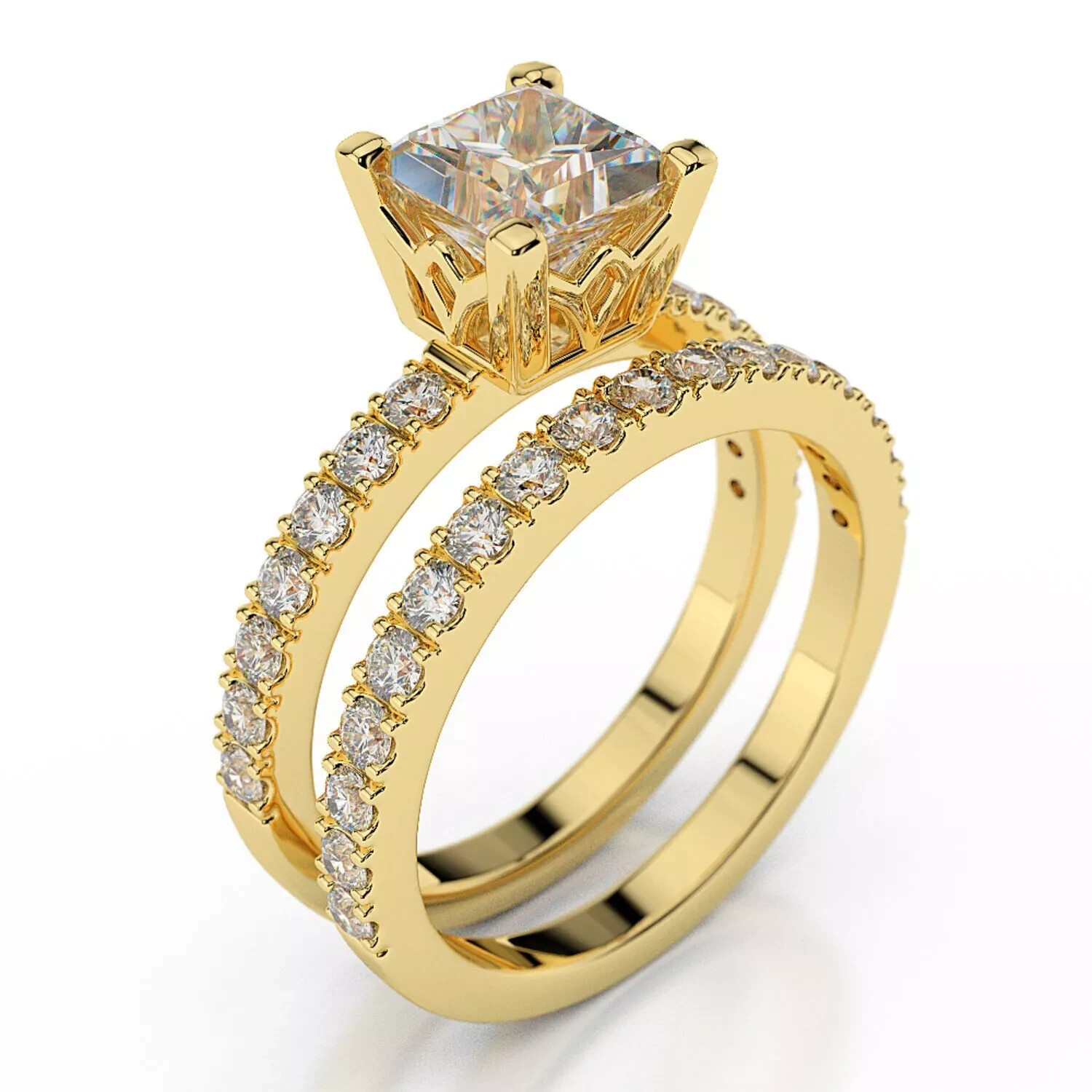 14k Yellow Gold Plated 2Ct Cushion Cut Moissanite Wedding Ring for Women