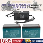 Description: 6-DZM-12(12V12AH/10HR) is a Sealed Lead Acid (SLA) rechargeable battery,it has long lasting high performance in high and low temperatures. Battery Specification: Product Type: 12V 12Ah 6-DZM-12 Battery Color:Green+Black Model : 6-DZM-12 Voltage : 12 Volt Amperage : 12AH Cycle Use:14.4-15 OV Termination Voltage:10.0-10.5V Electric Current:1.0-1.5A Size:5.9"(150mm) *3.9"(100mm)*3.7"(95mm) Charger Specification: Product Type :Charger Condition : 100% Brand New Color:Black Input : 110-120VAC,50/60HZ 1.8A Output : DC+24V / 1.8A Connect o r : 3-Prong , three ports inline Female connector. Battery Features: v Maintenance Free -This battery is manufactured with thick absorbent glass mat (AGM) separators and advanced valve regulated technology which are no spills,no leaks,and no need to check the water. v Long Shelf Life -These sealed lead-acid (SLA) absorbed glass mat (AGM) rechargeable battery can be stored up to 6 months at 25 ℃ /77 ℉ and the monthly self-discharge rate is lower than 3%.This spec is 5 times better than flooded batteries. v High Discharge Rate -Premium quality with low internal resistance and is able to discharge up to 10 times the battery rated capacity. Charger Features: v High efficiency , Soft starting current , reduced the impact of AC input effectively , small size , light weight. v Made of environmental-friendly material , safe and anti-interference , durable to use . v High quality and UL approved , safty to use. v Safety protection : automatically overload cut-off , over voltage cut-off , over temperature cut-off , short-circuit cut-off. v Indication lights to show that the charging is completed. Packing List: 2 * 12V 12Ah 6-DZM-12 Battery 1 * 24 V 1.8 A Charger