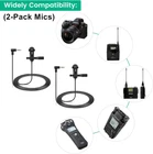 Lavalier microphone compatible with DJI mic 2 and mic 1 wireless microphone system bodypack transmitters(tx); Also compatible with Rode wireless go ii / 2, wireless go, wireless me, and wireless pro microphone system bodypack transmitters(tx); And compatible with Hollyland Lark Max, Lark 150 wireless microphone system bodypack transmitters(tx) Conveniently using for interview, vlog, stage, presenters, interviwers, broadcasters, lecturers, fitness instructor and any other applications requiring minimum microphone visibility with maximum comfortability operation Omnidirectional condenser microphone, less noise, voice clarity, high sensitivity, more flexible, better for picking up voice Black, 1.5 meters / 5 feet, compact and portable, small enough where it can be easily hidden under the talent's clothing and not be noticeable; High quality windscreen foam cover, keeps your microphone safe from harmful, dust, moisture, corrosion 3.5mm male 90 degrees l-shaped plug, right angle, easier to plug in and plug out; 3 poles TRS gold-plated tip, better surface and less resistance Omnidirectional condenser lavalier lapel microphone, professional vocal pickup condenser mic, used for wireless microphone bodypack transmitters. With 1/8"(3.5mm) golden-plated connector (3 poles tips, TRS) and windscreen foam cover. Features: Connector:3.5mm Plug Polar Pattern:Omnidirectional Cable Length:5 feet / 1.5 meters Products include: 2 x Lav Microphones 2 x Windscreen Foams