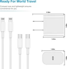 【20W PD Fast Charger for iPhone】 iPhone fast charger equipped with 2-pack 20W PD USB Type C power delivery wall plug. PD 3.0 quick-charge USB C port provides max 20W output power, charging your iPhone 14/13/12 up to 50% in just 30 minutes - saving over 1.5 hours. 【2-pack Apple MFi Certified USB C to Lightning Cable 6ft】 USB C to lightning cable features original Apple chip with latest C94 terminal and smart chip. MFi certified to prevent warning messages, with built-in intelligent chip providing overvoltage protection, battery protection and automatic chip recognition to safeguard your iPhone/iPad/AirPods Pro battery. 【Safe & Efficient Fast Charging Block】 Type C wall charger features multiple protection systems against overvoltage, overcharge and overheating. Smart chip automatically matches device's current requirements for fast, safe and stable charging. 6ft cable ideal for home/office/travel use. 【Universal Compatibility】 Works with: • iPhone 14/14 Plus/14 Pro/14 Pro Max • iPhone 13/13 Pro/13 Pro Max/13 Mini • iPhone 12/12 Mini/12 Pro/12 Pro Max/SE • iPhone 11/11 Pro/11 Pro Max/XS/XS Max/XR/X/8 Plus • iPad Also charges iPhone 7/6 Plus, iPhone 5/5c/5s/SE at original speed. 【What You Get 】 2×20W PD 3.0 Apple-compatible charger plugs + 6ft certified USB C to lightning cables. Includes 1-year warranty. Contact us with any questions.