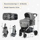 2-in1 Convertible Baby Stroller High Landscape Infant Stroller w/Reversible Seat -Choose the lying mode or sitting mode for your baby -Change the seat direction to face the outside or face yourself -Make the seat face you for parent-child interaction -Get the seat face outside to encourage the baby to observe the outside world -High landscape baby stroller ensures your baby is surrounded by fresh air -The 5-point safety belt renders your baby comfortable and secure -360°rotate the front wheels for smooth riding or lock them for security -Step on the one-step brake on the rear wheels when you stop the baby stroller -Backrest adjustment up to 150° for different requirements -Stretch the 3-position adjustable canopy whenever you need -Remove the footmuff for convenient machine washing -Detach the bumper bar to get your baby out of the baby stroller -Fold the infant carriage with or without the sleeping basket on -The bottom storage basket holds daily items for great convenience -The ASTM and CPSIA certification brings extra reliability ● High Landscape Baby Stroller: Varying from other baby strollers, this high landscape stroller prevents babies from car exhaust and ground dust. Moreover, it features a 3-level adjustable carrycot that is suitable for newborns. Babies under 6 months can use the bassinet mode while the sitting mode fits the child after 6 months. ● Reversible Seat: The reversible seat allows you to encourage your baby to observe the outside world by letting him/her face be outside. Likewise, it's convenient for you to communicate with your baby when the seat is facing you. More importantly, the 5-point harness fits the babies' bodies while ensuring their safety. ● Shockproof Wheels: The suspension EVA wheels are shock-absorbing, giving your baby a smooth ride on different roads. The front wheels can be rotated 360°, allowing you to push the baby carriage effortlessly, which can also be fixed as needed. Step on the one-step brake on the rear wheels for security. ● One-hand Quick Folding: With the foldable design, you can fold the baby stroller quickly and conveniently. And the folding infant pram stroller is easy to store. What's more, this baby stroller has a large storage basket on the bottom that permits you to keep your everyday items on for easy access. ● Safely Designed: The heavy-duty rustproof steel frame enables the baby stroller stable enough. And the 3-position adjustable canopy, as well as the removable footmuff, make the baby stroller suitable for all seasons. Furthermore, when you need to get your baby out of the baby stroller, the removable bumper bar helps a lot. Color: Grey Material: Steel, Aluminum, Polyester, EVA Overall Dimension of Unfolding: 35" x 24" x 43" (L x W x H) Dimension of Folding (with basket): 43" x 24" x 19" (L x W x H) Dimension of Folding (without basket): 33.5" x 24" x 18" (L x W x H) Inner Dimension of Basket: 30" x 13" x 9" (L x W x H) Net Weight: 42 lbs Weight Capacity: 33 lbs Weight Capacity of Storage Basket: 6 lbs Recommended Age: 0 - 36 Months