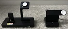 For sale is 2 charging stations for IPhone 14 13 12 11 10 and Apple Watch. They are both is good working condition. One of the docks has 2 USB ports. Both chargers charge fast. Box is not included and selling as is. Feature: BUILT-IN ORIGINAl APPLE MFi-Certified LIGHTNING CONNECTOR: Apple MFi Certified, charge confidently. Compatible with ALL (2020 & older) Apple Watch & iPhone models. Charge you AirPod, iPad, iPod, & Apple Siri Remote. APPLE WATCH MAGNETIC CHARGING CABLE INCLUDED. For one of the chargers TWO BUILT-IN 2.4 mAh USB PORTS: Utilizes charge-iQ Fast Charge technology to powerfully charge all devices simultaneously. (Each charge-iQ USB port doubles charging speed as they are 2.4A and not 1A). UL Listed adapter Included. CABLE ORGANIZATION & NIGHTSTAND MODE: Cable lengths are neatly stored in the designated concealed compartment below. Supports Nightstand Mode. portstilts back-and-forth to accommodate most cases. Built with high-grade aluminum and diamond-cut edges, and the base is weighted to insure security. NOT COMPATIBLE WITH OtterBox & LifeProof CASES.