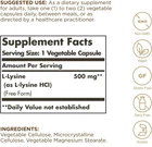 2 bottles Solgar L-Lysine 500 mg, 100 Vegetable Capsules per bottle - Enhanced Absorption & Assimilation - Promotes Integrity of Skin & Lips - Collagen Support - Amino Acids - Non-GMO, Vegan, Gluten Free About this itemEssential Amino Acid; Amino acids are the building blocks of protein; They are needed for several internal body functions and help produce energySupports Healthy Skin Tissue; L-Lysine helps promote the integrity of skin and lips; Lysine is used by the body to produce collagenOptimal Amino Absorption; The free form lysine in this dietary supplement promotes optimal absorption and assimilation because it is highly bioavailableNon-GMO & Gluten Free; Solgar L-Lysine Vegetable Capsules are suitable for vegans and vegetarians; Free of: gluten, wheat, dairy, soy, yeast, sugar, sodium, artificial flavor, sweetener, and colorThe Gold Standard: For over 70 years, Solgar has been committed to quality, health, and well-being. Our mission is to create the finest nutritional supplements in small batches, through tireless research, using only the finest raw materials