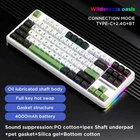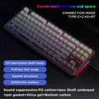 Model Number:Aula F87 Features: 1. 3 mode connection 2. Full key hot swapping 3. Gasket structure 4. Full key without impulse Specification: 1. Name:AULA F87 Mechanical Keyboard 2. Brand: AULA 3. Type: Mechanical keyboard 4. Number of keys: 87 keys 5. Connection method: wired & 2.4G & Bluetooth 6. With or without hand support: No 7. Key technology: mechanical axis 8. Product size: 36.59 * 13.9 * 4.11cm 9. Backlight: RGB