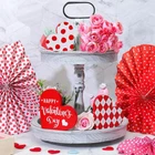 Features: Extensive applications: The heart shaped wooden pieces can be placed anywhere you want for a stunning Valentine's Day display, like your living room, kitchen, bedroom, hallway office, bathroom, hotels, bars, restaurants, and more. Reliable quality: Made of wood, the home table top sign is so firm and sturdy, hard to break or deform, without loose burrs and slivers, able to provide a long time service for you. Moreover, this valentine's day sign is of high color fastness and the color will hardly fade away. Specifications: Material: wood Color: as shown in the pictures Height of large size: 12 cm/ 4.72 inches Height of medium size: 10 cm/ 3.94 inches Height of small size: 8.5 cm/ 3.35 inches Thickness of all size: 1.2 cm/ 0.47 inches Package includes: 3 x Heart table decorations ( in different heights and designs) Notes: Manual measurement, please allow slight errors on size. The color may exist slight difference due to different screen displays. Sufficient quantity: the package includes 3 pieces of Valentine's Day signs in various adorable designs, sufficient enough to satisfy your needs for home decoration on Valentine's Day, add a warm and sweet touch to your room Double Sided Printing Design: the rustic sign decor is characterized by the large heart shaped body, and double sided printed with different romantic buffalo plaid patterns in vibrant colors of red, white, black, which presents a strong visual impact and looks quite charming Easy to use: the heart wood decor has three different heights, namely 12 cm/ 4.72 inches, 10 cm/ 3.94 inches, and 8.5 cm/ 3.35 inches, and it is designed with a flat bottom, 1.2 cm/ 0.47 inches in thickness, which enables it to stand upright on most flat surfaces and tabletops without supporting Create a romantic atmosphere: these wooden decorative signs can fill your home or office with love and lots of festive spirits, happily celebrating Valentine's Day with the one you adore, to warmly welcome your guests into your love filled home Romantic and delicate present: not only does the heart table decorations enhance the interior decorations of your home or workplace, but also make a sweet present for professing your love to your classmates, colleagues, friends on Valentine's Day, birthdays, or anniversaries