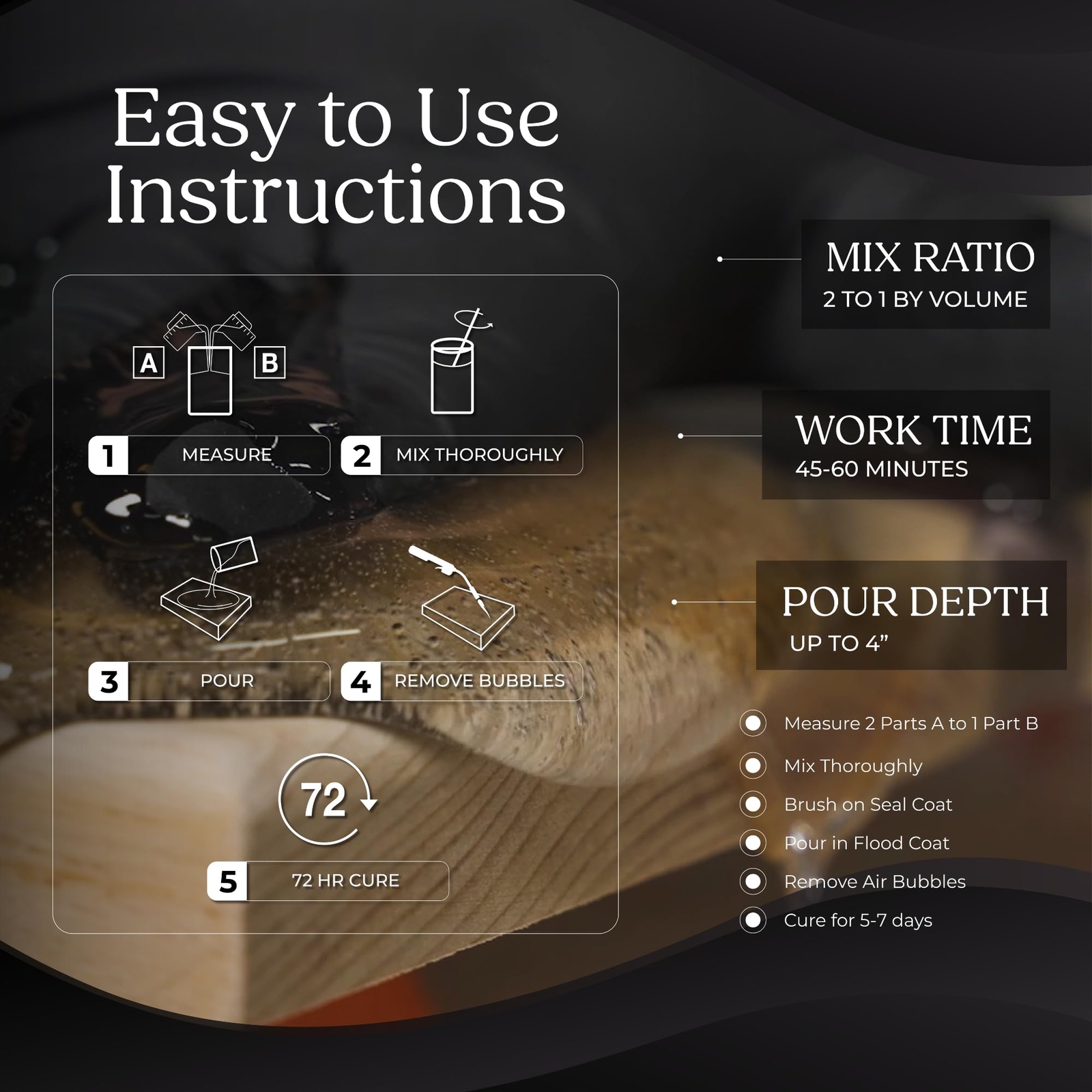 Deep Pour Epoxy Resin Kit 3 Quart - Food Safe, Clear Casting, Ideal for River Tables, Artistic Castings and DIY Projects - High-Gloss Finish, Up to 4" Pouring Depth - USA-Made, Low Odor Deep Pour Capability - Our epoxy resin kit offers a deep pour of up to 4", perfect for casting and encapsulating objects in crystal clear resin. Ideal for creating river tables, live edges, arts and craft tables, and artistic embedments. Extended Work Duration - Promise Deep Pour Epoxy Resin, our clear epoxy resin kit, provides an extended working time. This feature allows for the elimination of bubbles and imperfections, ensuring a flawless, glasslike finish. American Quality Manufacturing - Proudly made in the USA, our epoxy resin offers a low odor experience and is safe when used and cured properly. It's compatible with Mica Pigment Powders, resulting in crystal clear cures that highlight your added colors. High-Gloss Elegance - Enhance your DIY projects with our crystal clear epoxy resin. This resin craft kit delivers a vivid high-gloss finish, adding a touch of elegance and boosting the visual appeal of your creations. American Made Craftsmanship - With over 40 years of experience, brings the best of epoxy resin craftsmanship. Our focus on quality and formula perfection sets our products apart, making us a trusted choice for beginners and experts alike. Promise of Excellence - ProMarine Supplies and Incredible Solutions, two renowned epoxy brands, have united to form . We are a powerhouse in the resin art and home decor industries, offering top-quality products. Elevate your DIY projects with Promise Deep Pour Epoxy Resin, your pathway to achieving stunning glass-like finishes, your exclusive pathway to effortlessly achieving stunning glass-like finishes that captivate and inspire. Unleash your creativity and transform ordinary crafts into extraordinary works of art with the unmatched clarity, durability, and brilliance of this exceptional resin. Designed for captivating river table, live edge wood table, boat table, epoxy table enchanting resin pours, and treasured keepsakes, this clear resin a 2 part epoxy which offers easy mixing with a 2:1 ratio makin it perfect resin kit for beginners, a generous working time for impeccable results, self-leveling properties for a professional high-gloss finish, and compatibility with vibrant colors. Enhance the sophistication of your projects with our epoxy resin, offering a breathtaking high-gloss finish that elevates the visual allure of your DIY masterpieces. With our casting resin deep pouring epoxy resin depth of 2 inches, your creations remain beautifully encased in clear resin, while its trusted formula ensures reliability for all your casting needs and a great addition to your casting kit or in any of your resin art kit. Epoxy resin kit will help you to achieved your dream live edge wood table, deep river table, or any of your art resin projects. Redefine DIY excellence with Promise Deep Pour Epoxy Resin. Shipping We offer FREE shipping on all orders! We ship within Three business days of payment, usually sooner. We use a selection of shipping services such as UPS, FedEx, USPS etc. We only ship to the lower 48 states, no APO/FPO addresses or PO Boxes allowed. Local pickups and combined shipping options are not provided at this time. Return You can return a product for up to 30 days from the date you purchased it. Any product you return must be in the same condition you received it and in the original packaging. Please keep the receipt. Payment We accept payment by any of the following methods: PayPal Please pay as soon as possible after winning an auction, as that will allow us to post your item to you sooner! Feedback Customer satisfaction is very important to us. If you have any problem with your order, please contact us and we will do our best to make you satisfied. Contact Us If you have any queries, please contact us via ebay. We usually respond within 24 hours on weekdays. Please visit our eBay store to check out other items for sale! Thank you for shopping at our store.