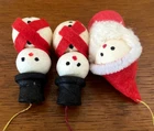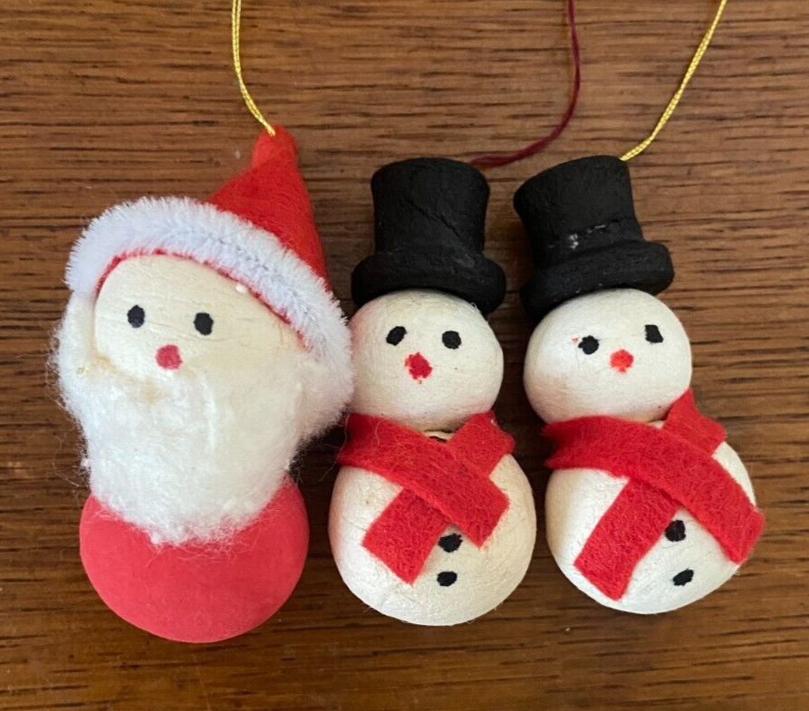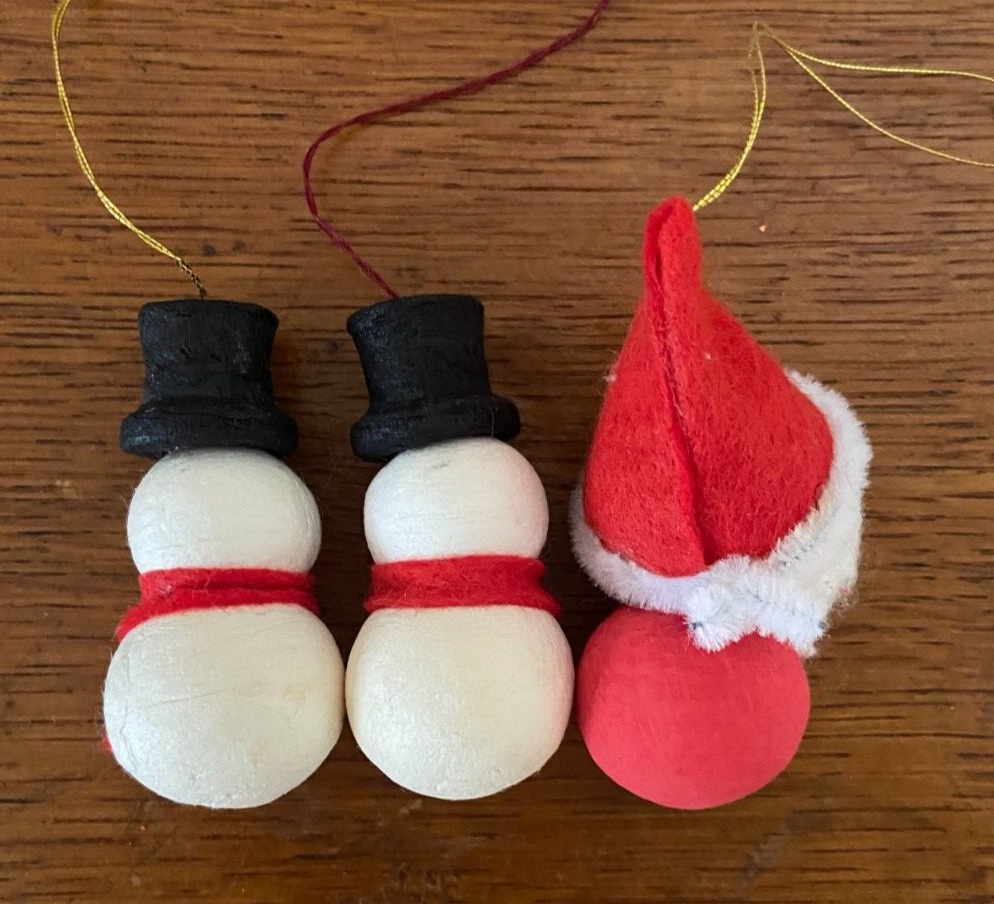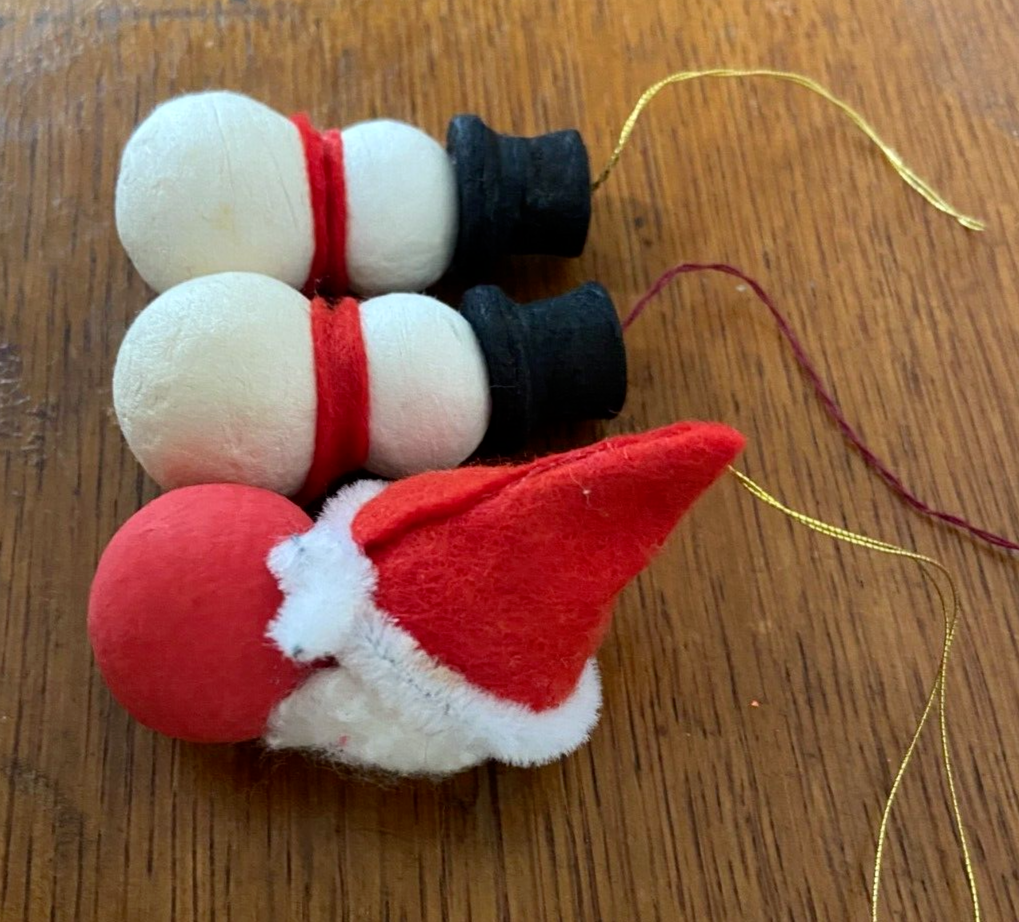 3 Vintage Christmas Tree Ornaments, Cotton & Felt, Santa + Snowman x 2 Very sweet vintage Christmas tree decorations/ornaments. The Santa measures 6.5 inches in height. The snowmen are 5.5 cm in height. Nice lightweight decorations - perfect for a goose feather Christmas tree. Good condition. Slight age related marks. Please refer to the photos. Will be packaged well, to ensure safe delivery. I'm happy to combine postage on multiple purchases where possible, using eBay's 'Simple Delivery' service. To do this, all items need to be placed in your basket first then purchased at the same time with one payment - eBay will automatically combine the postage costs.