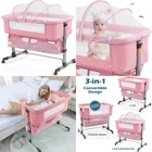 Add this item to your Watchlist Be The First One To Know When The Item Goes ON SALE ! DESCRIPTION Safe and comfortable - This baby bassinet can be used as a baby cradle or bedside sleeper attached to adult bed, mesh of two-side makes baby feel breathable and comfortable 5 height positions--from the floor to the bottom of the bassinet(mattress),min16.9'',max20.8'', suit for most adults' beds Easy to install - This bedside sleeper meets all US safety regulations on the assembly of side and horizontal cradle with clear instructions, and no tools are needed during installation What is included - The product comes with a detachable mosquito net and mattress(mattress Size:33''x19'') Multifunctional use:used as a baby crib or bedside sleeper attached to adult bed,Simply roll down the co-sleep side and latch it to your bed;raised unilaterally to prevent the baby from spilling milk Product Description 3 in 1 Travel Baby Crib Easy Folding Portable Crib with Storage Basket for Newborn with Breathable Net, Comfy Mattress What you get: 1*baby crib 1*mosquito net 1*storage bag 1*mattress with sheet Special design Prevent baby from spilling milk Adjust the height from one side,effectively prevent baby from spilling milk Extra mosquito net With a detachable mosquito net,keep you baby far away from mosquito,and have a sweet sleep Large capacity space Large capacity space,save your room space Bedside crib Converts to a Bedside crib Simply roll down the co-sleep side and latch it to your bed. Playpen Converts to a Playpen Simply remove the mosquito net to allow your baby to crawl and play freely. Adjustable height 5 height positions--from the floor to the bottom of the bassinet(mattress),min16.9'',max20.8'', suit for most adults' beds Washing tips You can remove the sheet cover for the and cloth for the crib to clean ,machine wash gentle cycle with cold water. Sun dry or low tumble dry Breathable and comfortable support evenly,protect baby's spine Easy to move with 4 universal wheels Silent swivel wheels locks in place retractable support evenly,protect baby's spine Seguro y cómodo: esta cuna para bebé se puede usar como cuna para bebé o como cama para dormir junto a la cama de un adulto, la malla de dos lados hace que el bebé se sienta transpirable y cómodo 5 posiciones de altura: desde el piso hasta la parte inferior de la cuna (colchón), mín. 16,9'', máx. 20,8'', adecuado para la mayoría de las camas de adultos Fácil de instalar: esta cuna para dormir junto a la cama cumple con todas las regulaciones de seguridad de EE. UU. sobre el ensamblaje de la cuna lateral y horizontal con instrucciones claras y no se necesitan herramientas durante la instalación Qué está incluido: el producto viene con una mosquitera desmontable y un colchón (tamaño del colchón: 33'' x 19'') Uso multifuncional: se usa como cuna para bebé o cama para dormir junto a la cama de un adulto, simplemente enrolle el lado para dormir juntos y fíjelo a su cama; levántelo unilateralmente para evitar que el bebé derrame leche Descripción del producto Cuna de viaje 3 en 1 para bebé, cuna portátil plegable fácil con canasta de almacenamiento para recién nacido con red transpirable, colchón cómodo Lo que obtienes: 1 * cuna para bebé Cuna 1*mosquitera 1*bolsa de almacenamiento 1*colchón con sábana Diseño especial Evita que el bebé derrame leche Ajusta la altura desde un lado, evita eficazmente que el bebé derrame leche Mosquitera adicional Con una mosquitera desmontable, mantén a tu bebé alejado de los mosquitos y disfruta de un sueño reparador Gran capacidad Gran capacidad, ahorra espacio en tu habitación Cuna de noche Se convierte en una cuna de noche Simplemente baja el lado para dormir juntos y fíjalo a tu cama. Parque infantil Se convierte en un parque infantil Simplemente retira la mosquitera para permitir que tu bebé gatee y juegue libremente. Altura ajustable 5 posiciones de altura: desde el suelo hasta el fondo del moisés (colchón), mín. 16,9'', máx. 20,8'', apto para la mayoría de las camas de adultos Consejos de lavado Puede quitar la funda de sábana y la tela de la cuna para limpiarla, lavar a máquina en ciclo suave con agua fría. Secar al sol o secar en secadora a baja temperatura Transpirable y cómodo Soporte uniforme, protege la columna vertebral del bebé Fácil de mover con 4 ruedas universales Ruedas giratorias silenciosas que se bloquean en su lugar retráctiles Soporte uniforme, protege la columna vertebral del bebé Assembly Required Yes Color Pink-bedside Crib Item Weight 22.8 pounds Material fabric, Mesh Maximum Weight Recommendation 25 Kilograms Product Dimensions 35"L x 23"W x 5"H Product Care Instructions Hand Wash Only quality Best Premium Quality Product gift_for Husband Wife Boyfriend Girlfriend Mom Dad Friend shipping FAST Shipping sub_category Items On Sale 23.0 "h x 35.0 "h x 5.0 "h. Weight: 22.8 lb