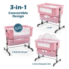 Safe and comfortable - This baby bassinet can be used as a baby cradle or bedside sleeper attached to adult bed, mesh of two-side makes baby feel breathable and comfortable 5 height positions--from the floor to the bottom of the bassinet(mattress),min16.9'',max20.8'', suit for most adults' beds Easy to install - This bedside sleeper meets all US safety regulations on the assembly of side and horizontal cradle with clear instructions, and no tools are needed during installation What is included - The product comes with a detachable mosquito net and mattress(mattress Size:33''x19'') Multifunctional use:used as a baby crib or bedside sleeper attached to adult bed,Simply roll down the co-sleep side and latch it to your bed;raised unilaterally to prevent the baby from spilling milk