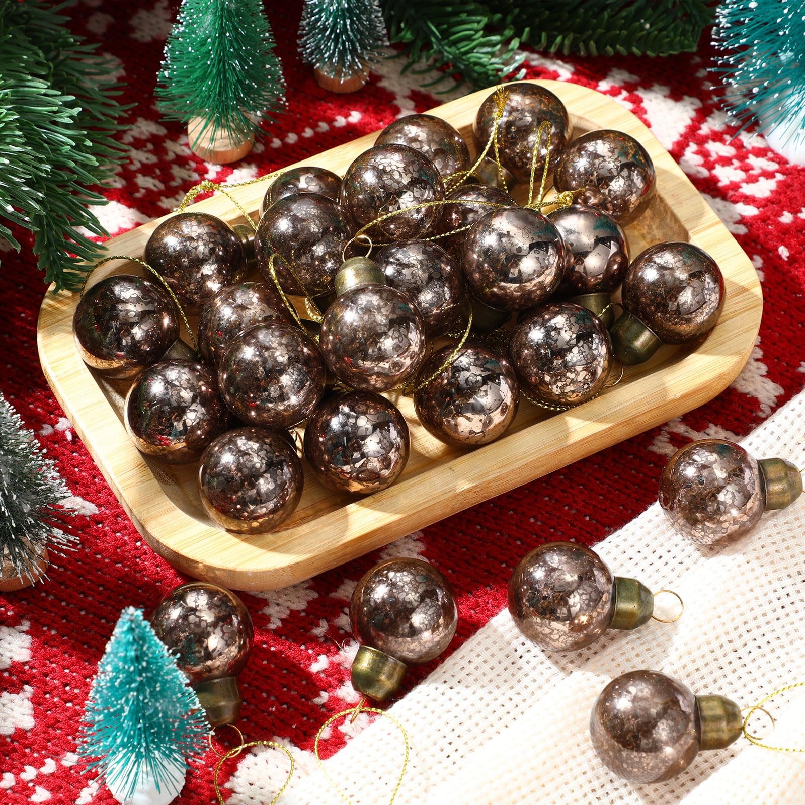 30 Pieces Mercury Glass Christmas Balls Mini Ornaments Bulk 1.18 Bronze Christmas Glass Balls Set: you will receive 30 pieces of Christmas tree glass ornaments; Sufficient quantity can meet your festive decoration needs, while the charming and cabinet appearance can add more beauty to your Christmas tree Quality Material: christmas ornaments balls are made of quality glass, not easy to scratch, fade or break; The exquisite craftsmanship makes them smooth in appearance, and can reflect beautiful light, adding a touch of romance to your Christmas Proper Size: christmas tree ball measure about 1.18 inches, which will blend in with most of your Christmas decors; And the small size also means lightweight, so that they will not bend the branches or fall off when decorated on the Christmas tree Delicate and Attractive: vintage ball ornaments can be applied in various DIY projects; Whether you want to create a unique centerpiece, decorate your wreath, or add a festive touch to garland, these ornaments offer endless possibilities for creativity Wide Applications: christmas tree glass ornaments have a wide range of uses apart from tree decor; Such as wreath, lantern, centerpiece, or even DIY as an accessory, and they can also be applied to weddings, engagements, anniversaries, parties, and more Features: Easy to use: These Christmas tree ball ornaments are equipped with hole and attached with hanging rope on each, thus these glitter glass ornaments allow you to hang up anywhere you want to look different, which will bring a lot of fun to your Christmas, decorate your home nicely and make it full of festive atmosphere. Ideal gift choice: These Christmas tree glass balls are designed with mercury gloss, fashionable and elegant, and look particularly charming under the lights, adding a touch of romance to any Christmas tree or holiday decoration. They will be your ideal gift choice, conveying your shining and warm love and sharing the warmth of the holiday. Specifications: Material: mercury glass Color: bronze Size: about 1.18 inches/ 3 cm in diameter Package includes: 30 x Christmas glass balls Notes: Manual measurement, please allow slight errors on size. The color may exist a slight difference due to different screen displays. Shipping We offer FREE shipping on all orders! We ship within Three business days of payment, usually sooner. We use a selection of shipping services such as UPS, FedEx, USPS etc. We only ship to the lower 48 states, no APO/FPO addresses or PO Boxes allowed. Local pickups and combined shipping options are not provided at this time. Return You can return a product for up to 30 days from the date you purchased it. Any product you return must be in the same condition you received it and in the original packaging. Please keep the receipt. Payment We accept payment by any of the following methods: PayPal Please pay as soon as possible after winning an auction, as that will allow us to post your item to you sooner! Feedback Customer satisfaction is very important to us. If you have any problem with your order, please contact us and we will do our best to make you satisfied. Contact Us If you have any queries, please contact us via ebay. We usually respond within 24 hours on weekdays. Please visit our eBay store to check out other items for sale! Thank you for shopping at our store.