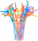300 Pcs Flexible Colorful Disposable Plastic Bendable Drinking Bendable Straws, 10.4" Long and 0.23'' Diameter