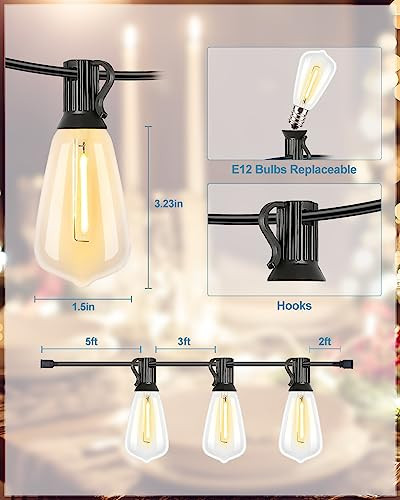 Return Policy Fast Delivery Trusted seller 300FT Outdoor String Lights, LED Bistro String Lights with Shatterproof ST38 Bulbs, 2200K Dimmable, Waterproof Hanging Lights for Porch, Party, Garden, Backyard, Balcony - ETL Listed Product Description OUTDOOR/INDOOR DECOR: This bistro lights outdoor 300 ft come with 102 plastic ST38 LED Bulbs (6 spare bulbs), which connect to 96 candelabra (E12) socket base, 1.5W per bulb (150lm). Cute bulbs are dimmer compatible, creating a warm and romantic atmosp that will make you feel relaxed and happy(Dimmer is not included in the package). WATERPROOF & SHATTERPROOF: Our outdoor bistro lights are manufactured of weatherproof plastic material, which can withstand extreme temperatures, rain, wind, and damp climates, perfect for outdoor decoration. Safe and durable. Either with an E12 socket base and a built-in spare fuse for easy replacement. PRACTICAL & CONNECTABLE: 32 hanging sockets bistro string lights come with 100-inch lead with male plug, 3ft spacing between bulbs, 5ft tail with a female connector, total length 100 feet. Lightweight and portable size for easy carrying and storage, end-to-end connection up to 20 strands. Include 3Pack x 100FT, Total 300FT. WIDE APPLICATION: patio string lights are perfectly suitable for indoor and outdoor lighting usage. These string lights for outside are great decorations for bistro, balcony terraces, patios, backyards, decks, weddings, tents, pergolas, pool umbrellas, and Christmas & Halloween parties. ASSURANCE PROMISE: provides 24-hour full-time after-sales service, ensuring your satisfaction with a 100% safe and easy installation process. Should you encounter any issues or have questions, our dedicated support team is readily available to assist you. Shipping Returns Payment Shipping Shipping is FREE to all addresses other than APO/PO boxes in the lower 48 states. All our stock ships from US-based warehouses. Shipped via USPS or UPS (depending on location and package weight) Unless stated otherwise, all orders will ship within 24-72 hours of your payment being processed. Check our feedback to see the great reviews of FAST shipping we offer. Returns Seller does not accept returns Payment We currently accept payment via eBay managed payments only. Once payment is cleared, we will dispatch your shipment within 1-3 business days. Please refer to the "Shipping" tab for more information regarding shipping speed to your destination.